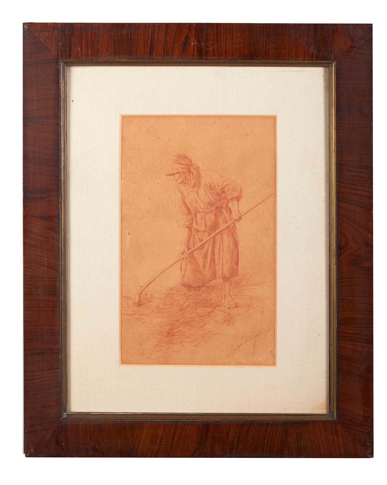 ANONIMO “Contadina”. Sanguigna su carta. Cm 32,5x20,5. Opera firmata in basso a destra.