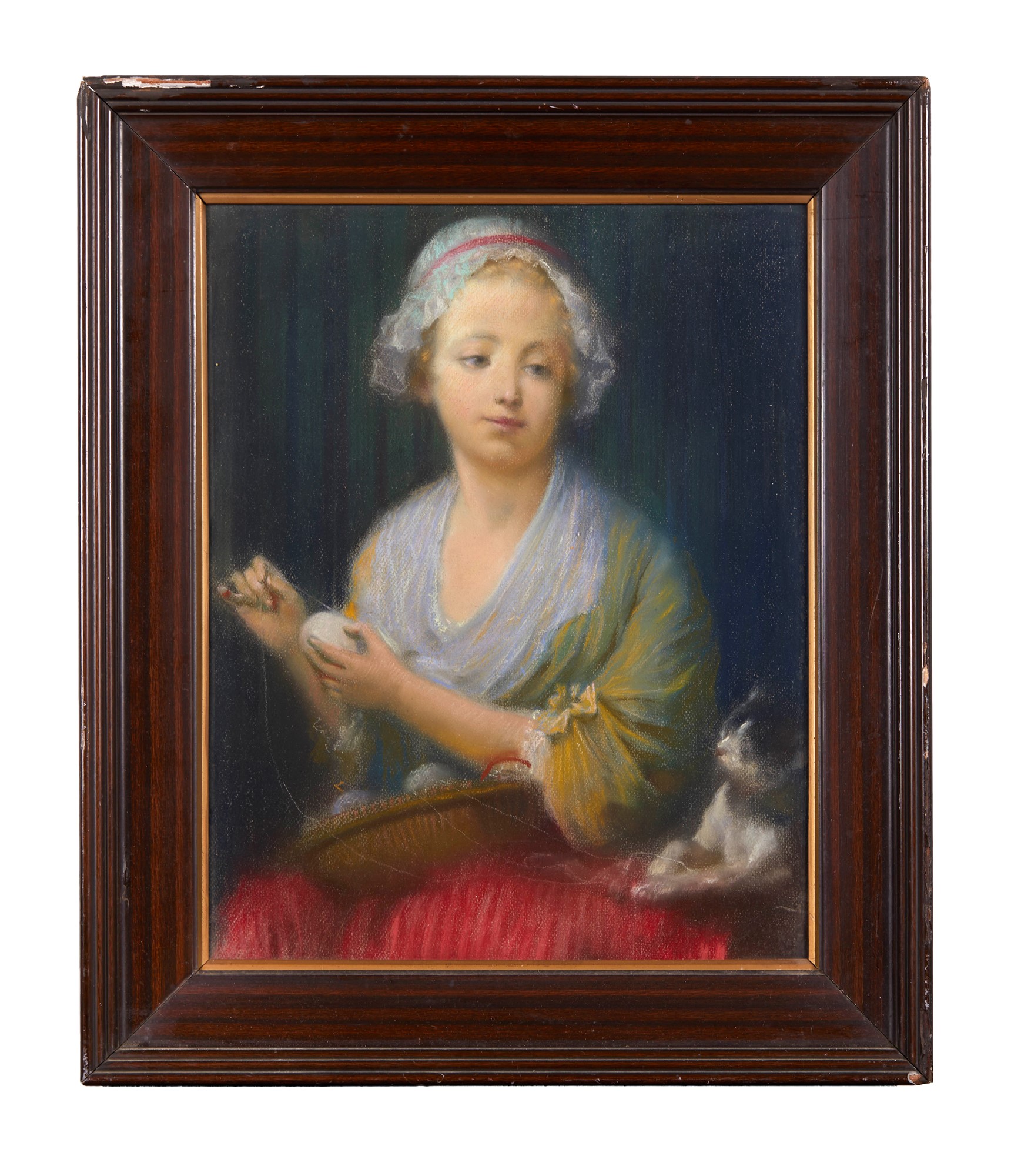 ANONIMO “Ritratto di fanciulla con gattino”. Olio su tela, xx secolo. Cm 53x42,5.