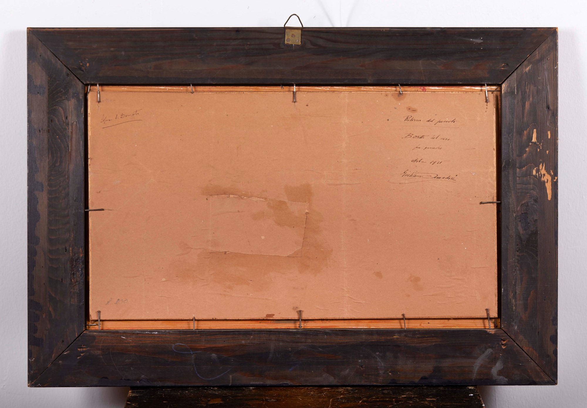 GIULIANO AMADORI (Bologna 1883 - 1972) “Ritorno del pascolo”, 1931. Olio su tavola. Cm 37x62. Opera intitolata, datata e firmata al retro Ritorno dal pascolo, ottobre 1931, Giuliano Amadori.