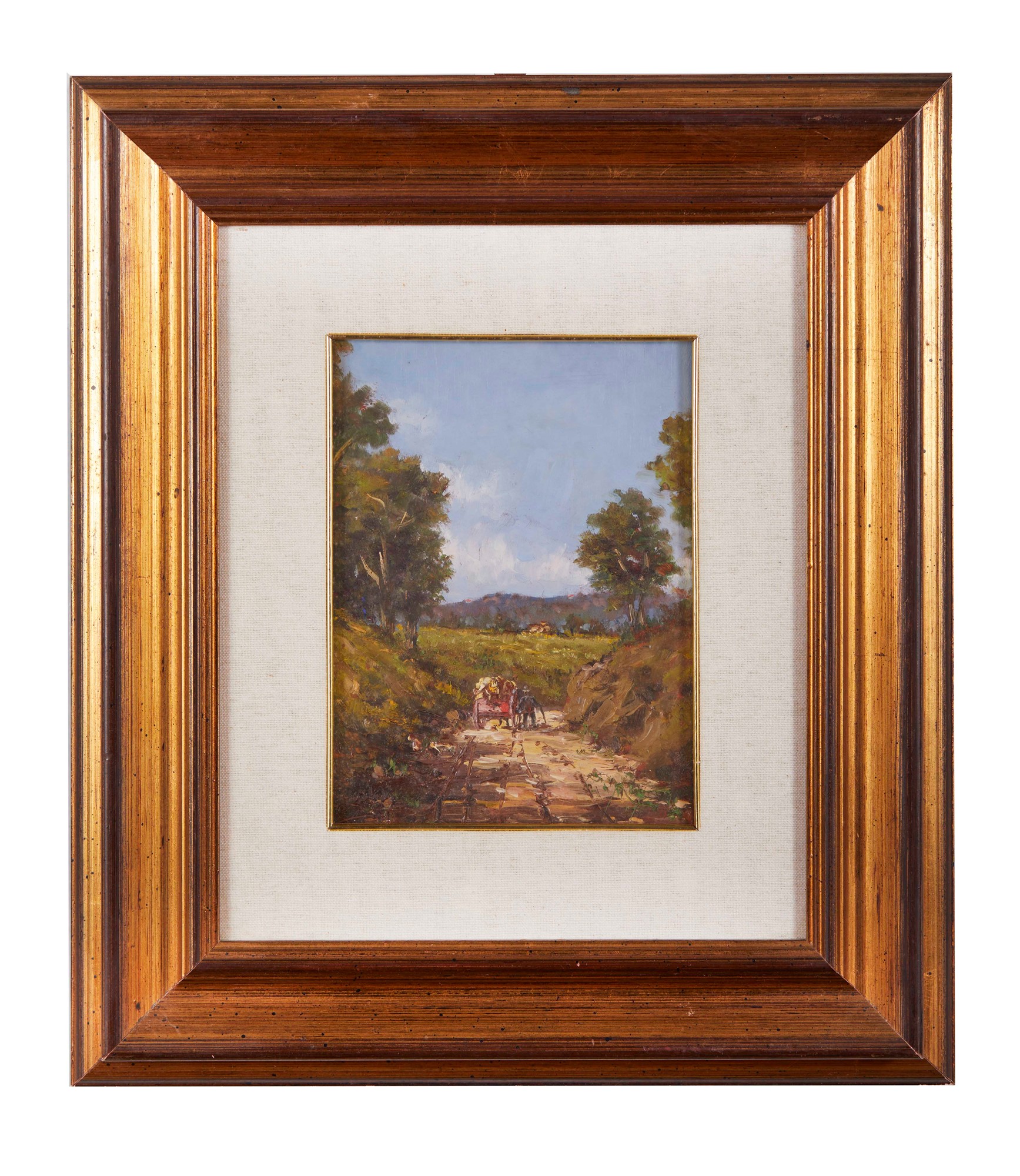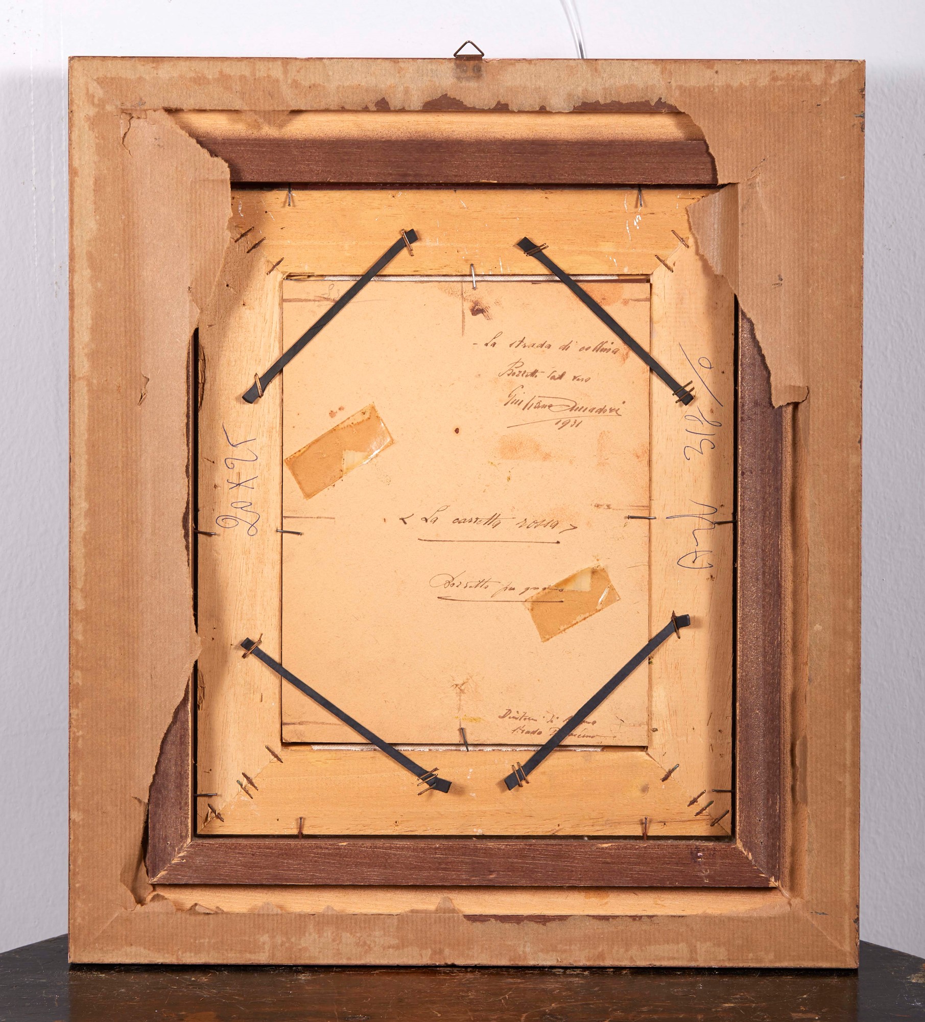GIULIANO AMADORI (Bologna 1883 - 1972) “La strada in collina”, 1931. Olio su tavola. Cm 25x19,5. Al retro opera intitolata, firmata e datata La strada in collina, Giuliano Amadori, 1931.