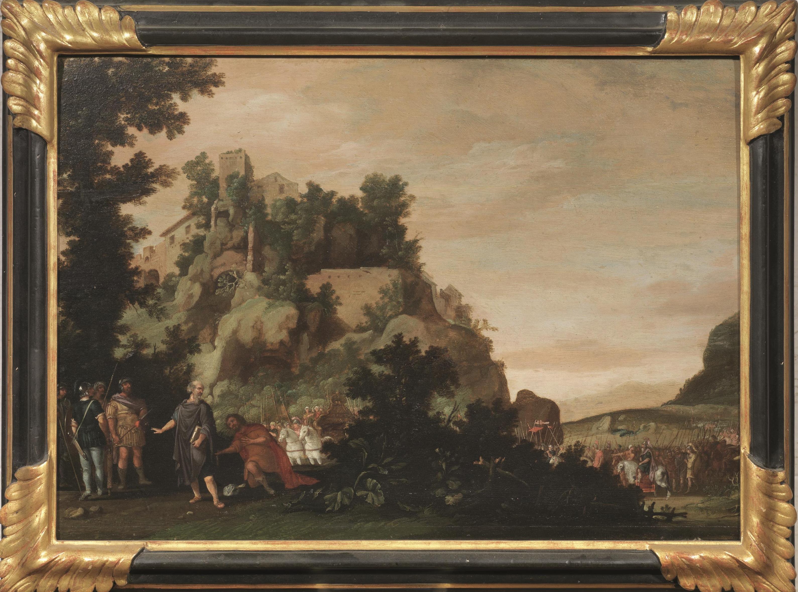 Scuola fiamminga, sec. XVIIPAESAGGIO CON EPISODIO DI STORIA ANTICAolio su...