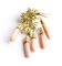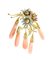 in oro giallo 18k, motivo di fiori in smalti e diamanti, con 5 elementi pendenti a goccia in corallo rosa (Corallium Deep Sea).
