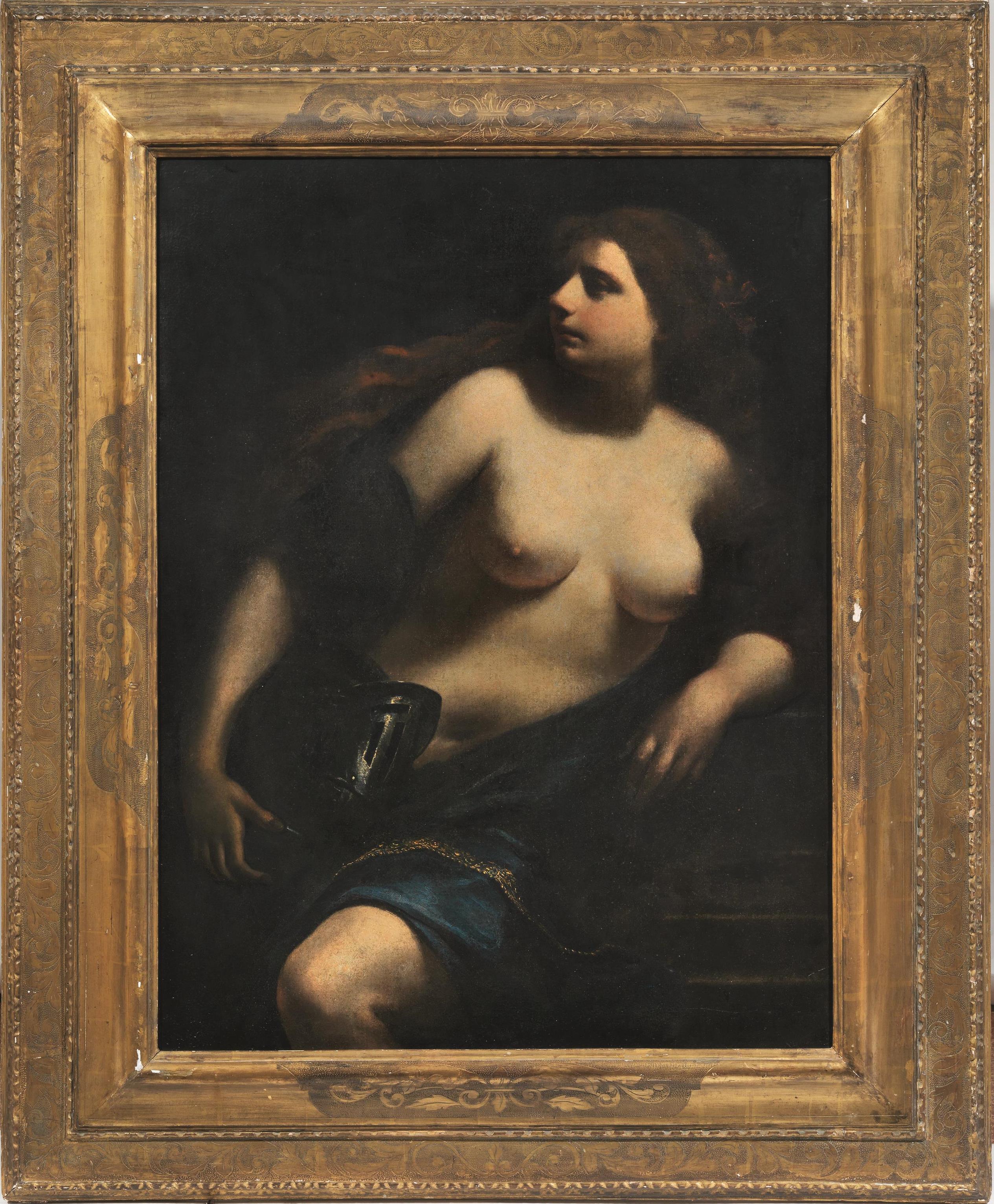 La presente tela, proveniente da una collezione privata fiorentina, è stata in questa sede proposta con un riferimento attributivo a Simone Pignoni a ragione delle forti analogie stilistiche e compositive con talune opere del pittore. La rappresentazione di questa Allegoria della Fortezza, connotata da un elmo retto nella mano sinistra, non trova riscontri in termini di soggetto all'interno del corpus del pittore ma può essere accostata per una simile impostazione della figura femminile alla Menade (o Venere) e satiro della collezione Jean-Luc Baroni di Londra (cfr. F. Baldassari, Simone Pignoni (Firenze 1611-1698), Torino 2008, p. 162, n. 106, ill.). A differenza del dipinto londinese in cui viene rappresentata la figura di un satiro, nella nostra tela l'unica protagonista è una giovane donna florida e sensuale, appena velata da un panneggio di colore blu, con lunghe ciocche di capelli come mosse dal vento, che può essere accostata per analogie fisionomiche con le figure di alcune Maddalene, presenti in collezioni pubbliche e private (Baldassari 2008, nn. 95-97) e con altre figure femminili come ad esempio la Lucrezia, già asta Christie's New York 1987, n. 65 (Baldassari 2008, p. 93 n. 16) che presenta una simile impostazione del volto e del busto.