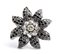 in oro bianco 18k, a forma di fiore, impreziosito da pavè di diamanti e zaffiri.