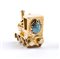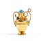 in oro giallo, un pendente a forma di anfora ed uno raffigurante una locomotiva, decorati con paste vitree.