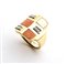 Anello in oro con corallo e diamanti in oro giallo ed oro bianco 18k, fronte...