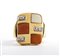 in oro giallo ed oro bianco 18k, fronte di forma rettangolare incastonato con elementi geometrici in corallo bianco e corallo Mediterraneo (Corallium Rubrum), dettagli in diamanti.