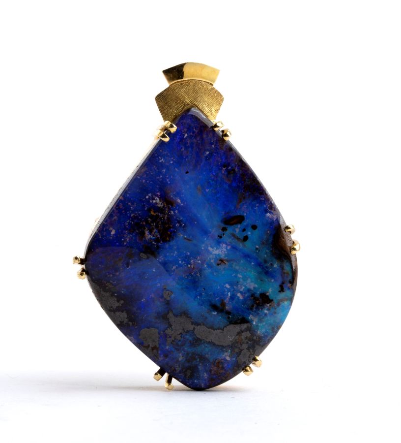 montatura in oro giallo 18k , incastonato con boulder di opale Australiano.