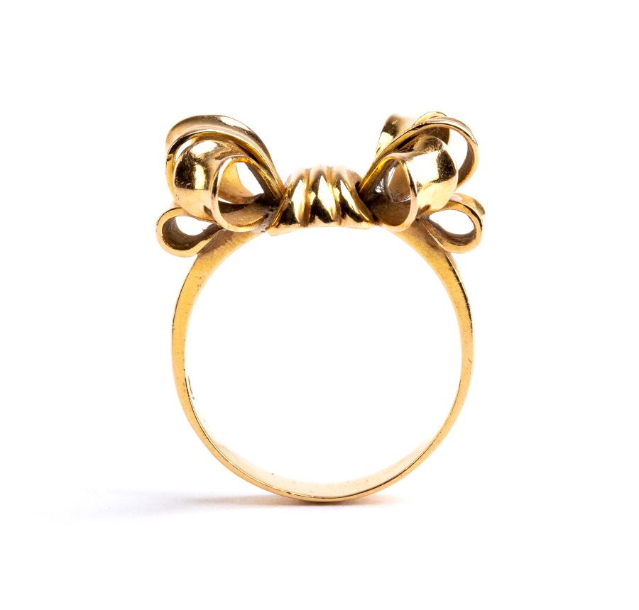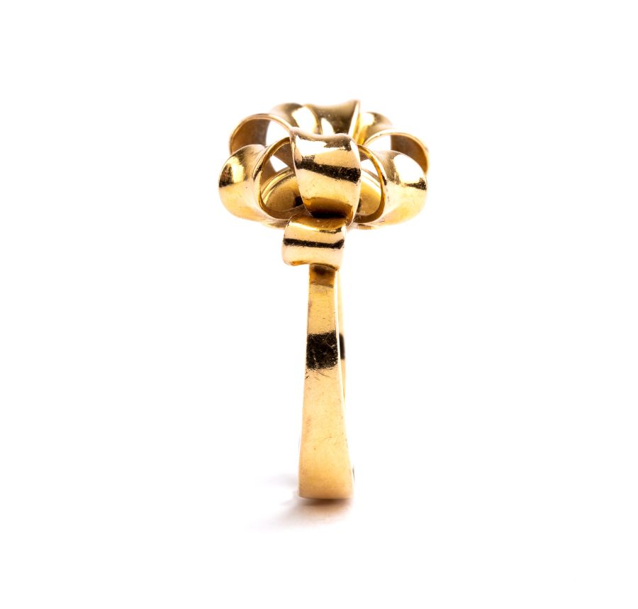 Anello in oro montatura in oro giallo 18k a forma di fiocco. Punzonato "750"....