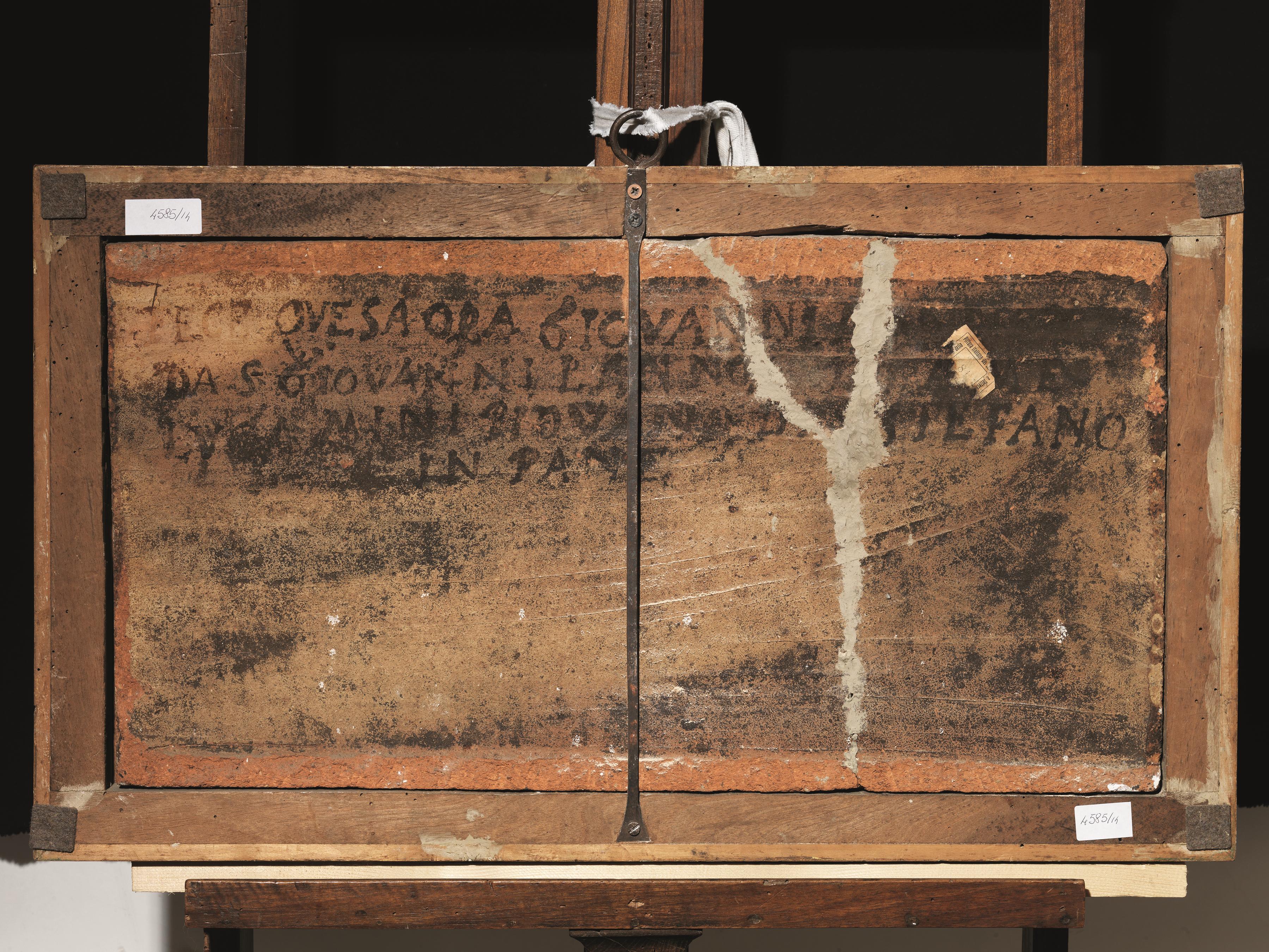 sul retro iscritto “FECE QUES(T)A OP(E)RA GIOVANNI DA S(A)N GIOVANNI L’ANNO 163(...) A ME LUCA MINI PIEVANO DI S. STEFANO IN PANE”