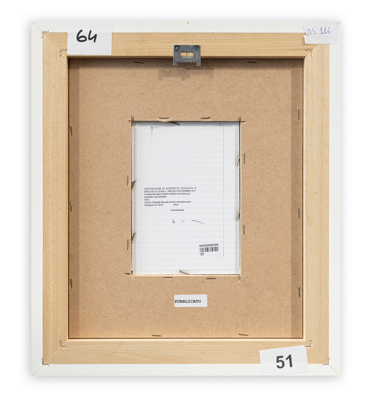 Certificato di autenticità a cura dell'Archivio Generale dell'Opera Pittorica di Mario Schifano - Fondazione Mario Schifano (RM) rilasciato in data 12/10/2007