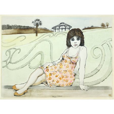 Bruno Caruso (Palermo 1927 - Roma 2018) - Ragazza seduta alla Villa Bellini di Catania cm 58x73 in cornice cm 69x86 Disegno acquerellato Firmato in basso al centro