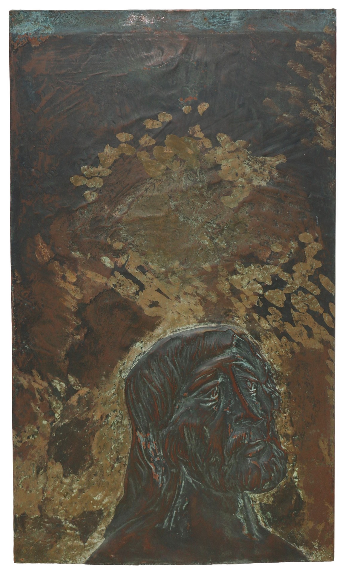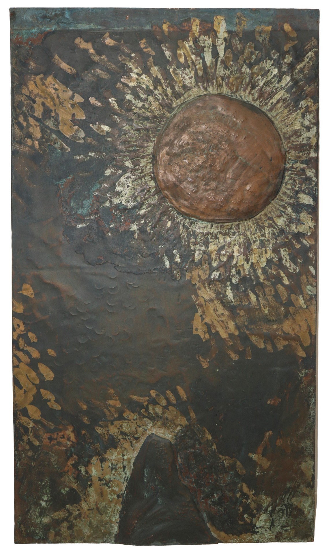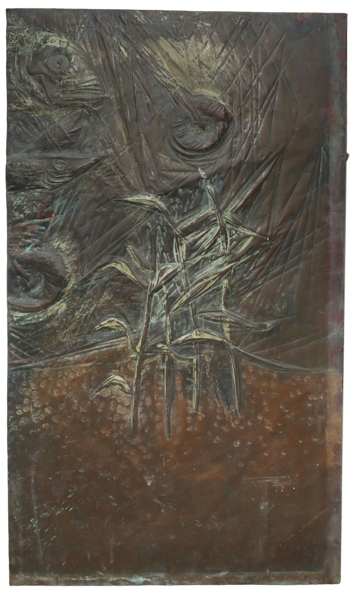 Sebastiano Milluzzo (Catania 1915 - Catania 2011) - Grande pannello in lamina di ottone raffigurante Pescatore ad Acitrezza