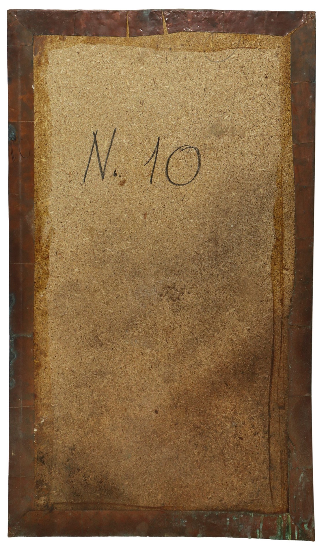 Sebastiano Milluzzo (Catania 1915 - Catania 2011) - Grande pannello in lamina di ottone raffigurante Pescatore ad Acitrezza H cm 90x50 (singolo pannello) - H cm 270x200 Formato da 12 pezzi. Firmato a destra. Formato da 12 pezzi. Firmato a destra.