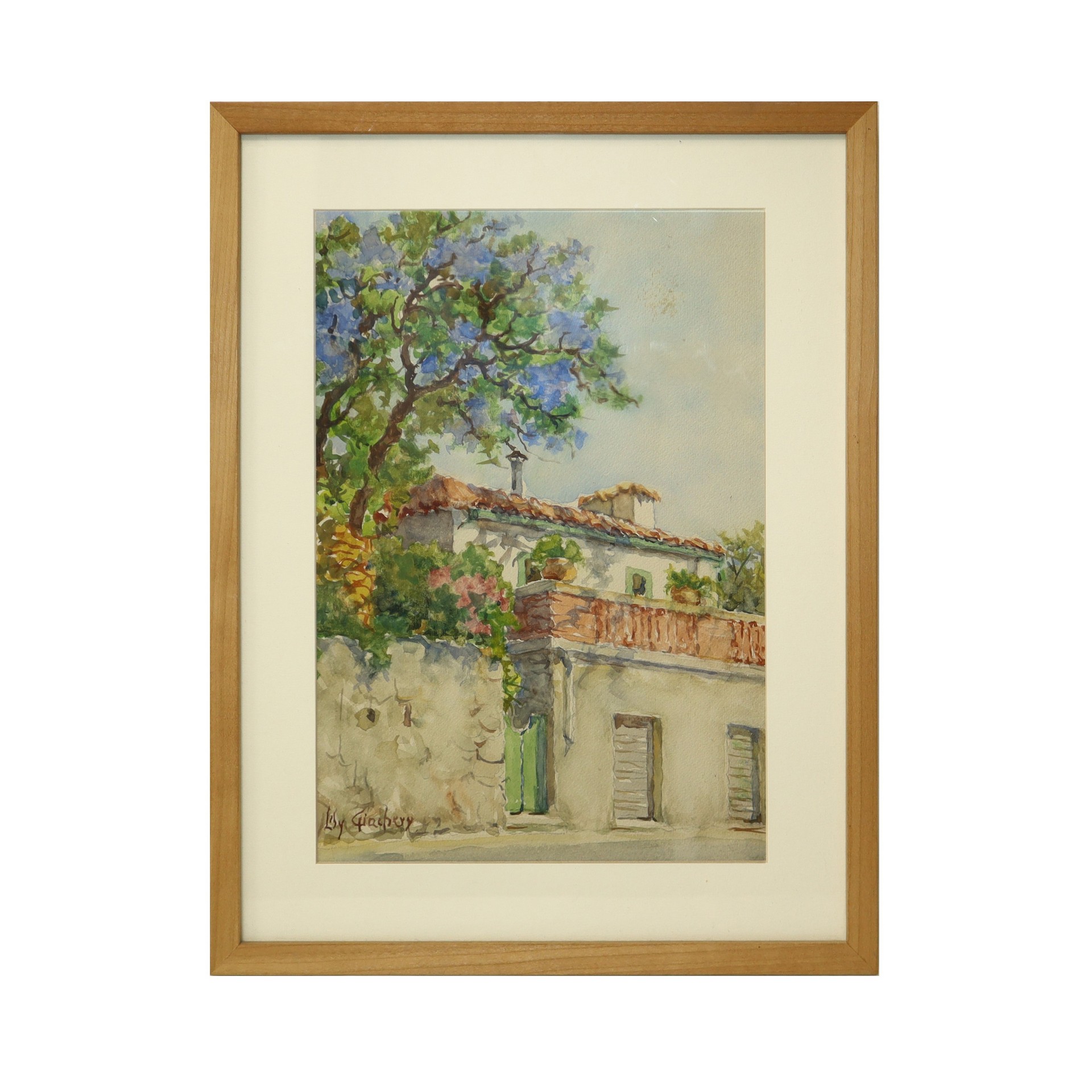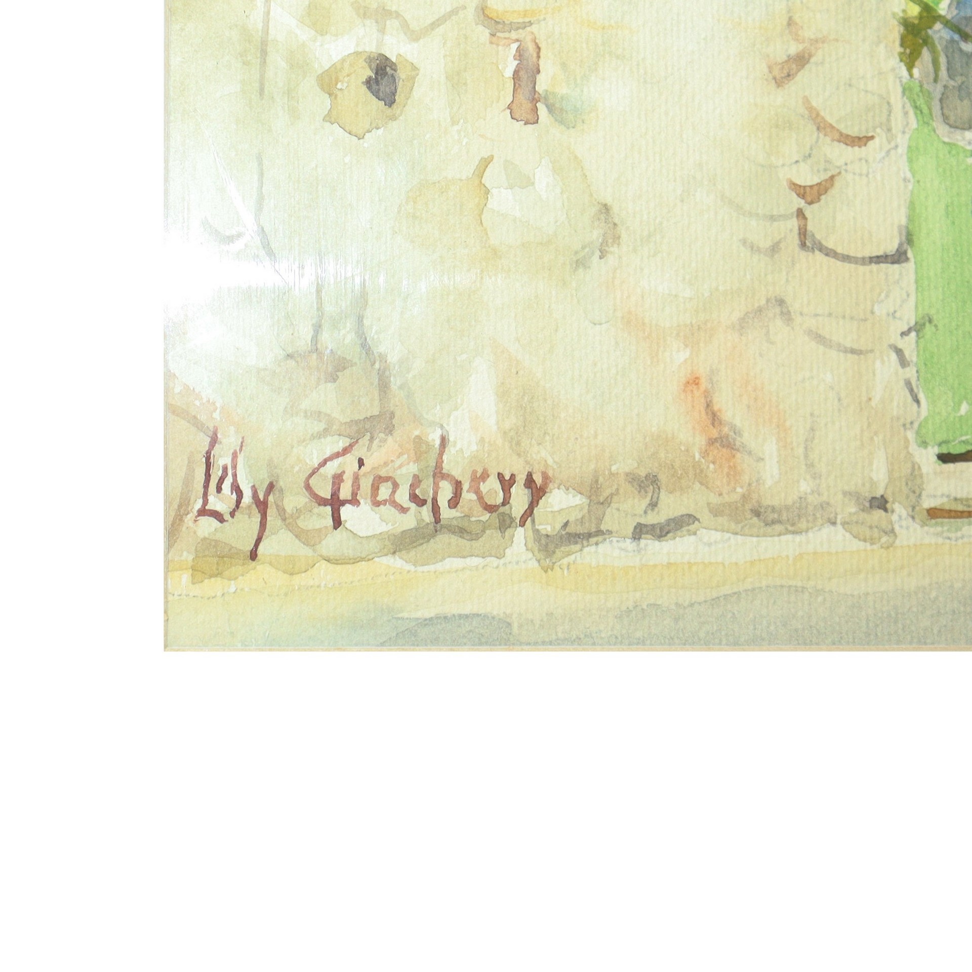 Lily Giachery (Inghilterra 1907 - Taormina 1994) - Casa con alberi a Taormina h cm 33X24 in cornice h cm 44X34 Acquarello su cartoncino Firmato in basso a sinistra