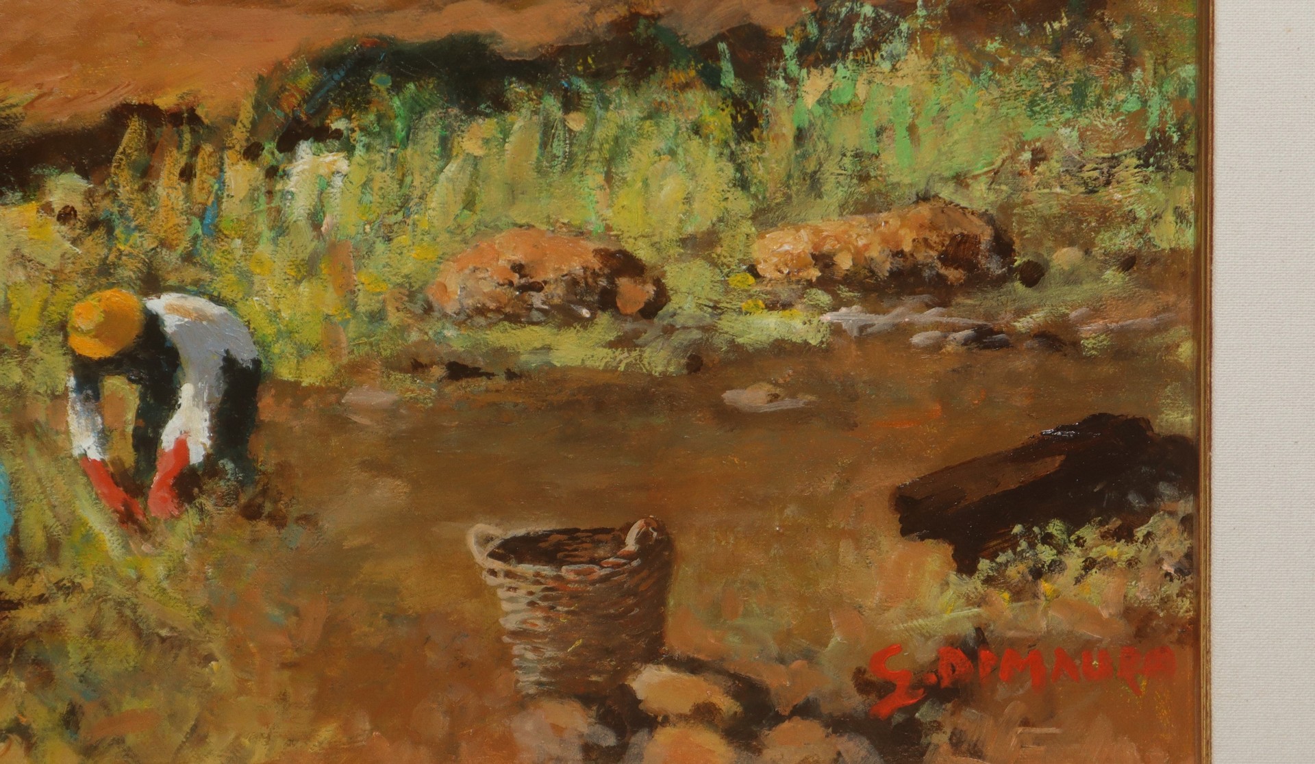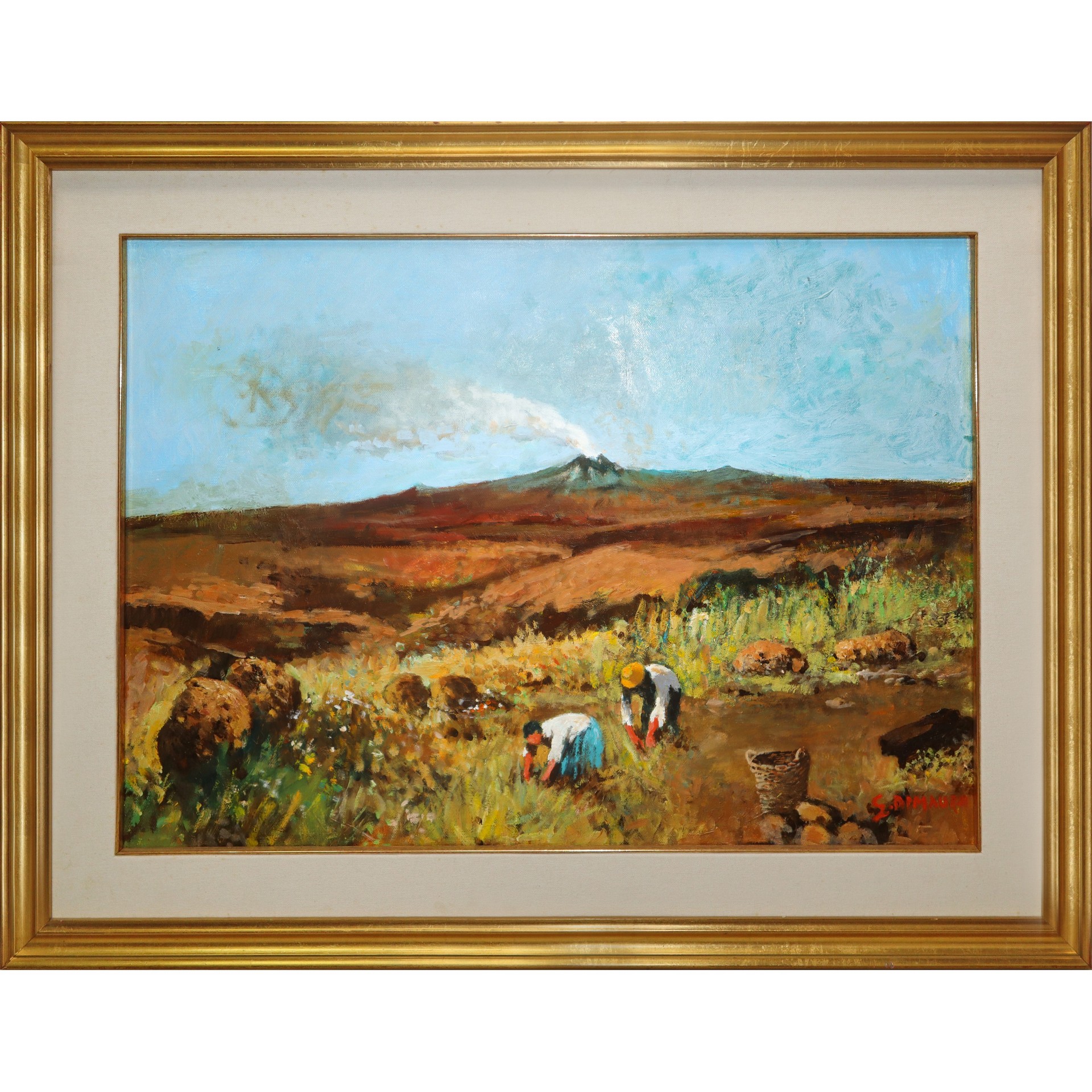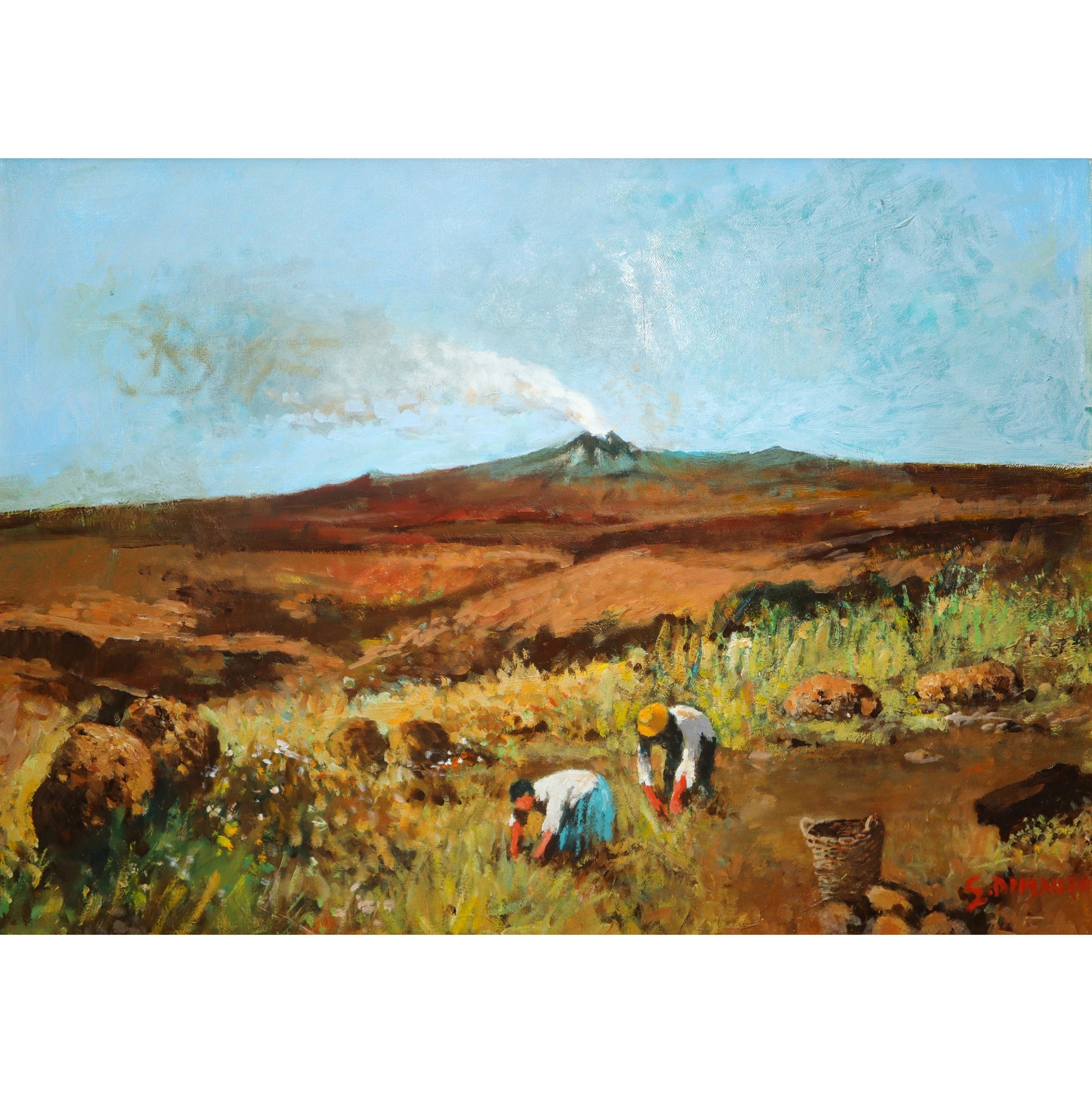 Etna e contadini nei campi h cm 50X70 in cornice h cm 67X87 Olio su tela Firmato Di Mauro