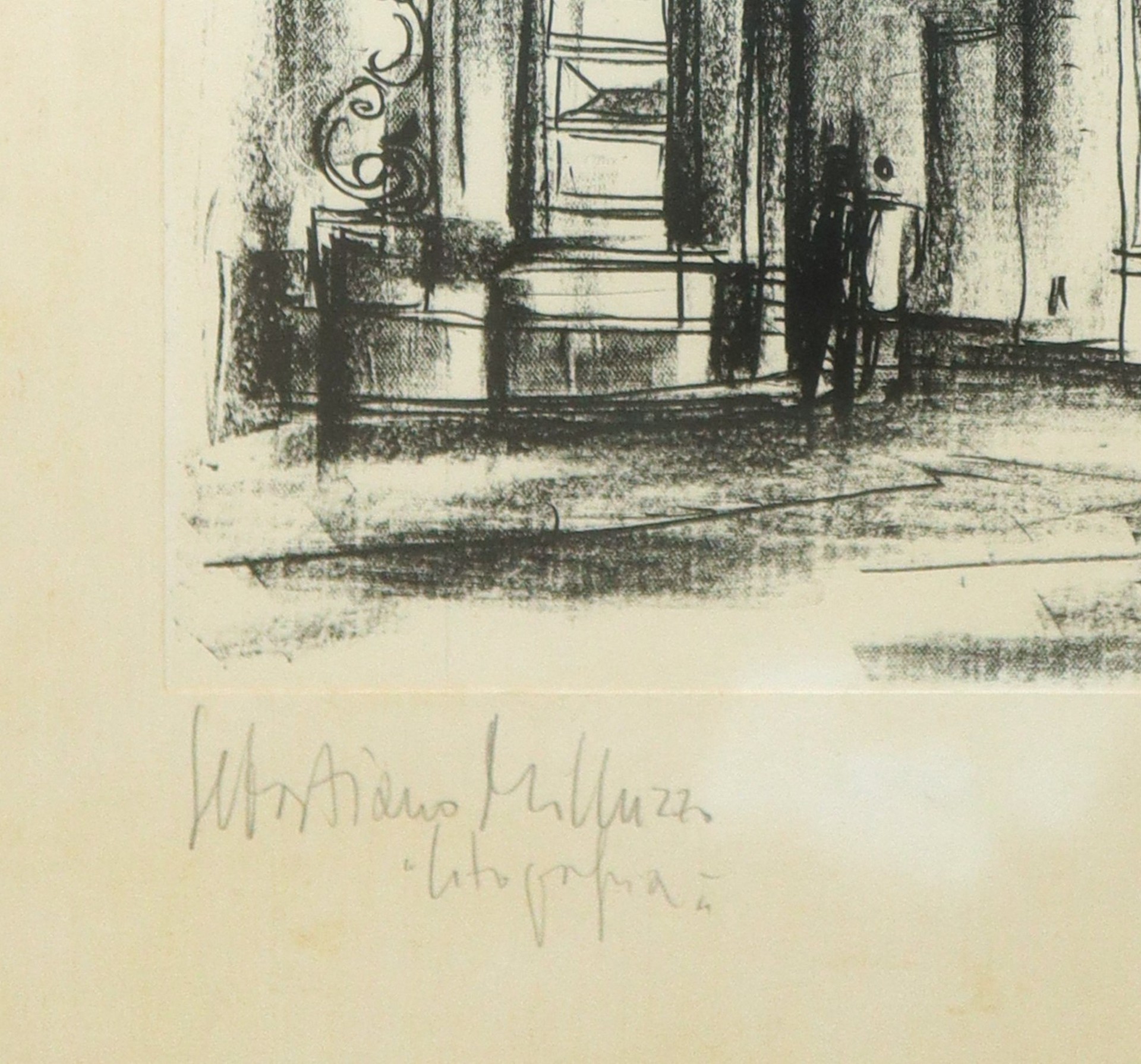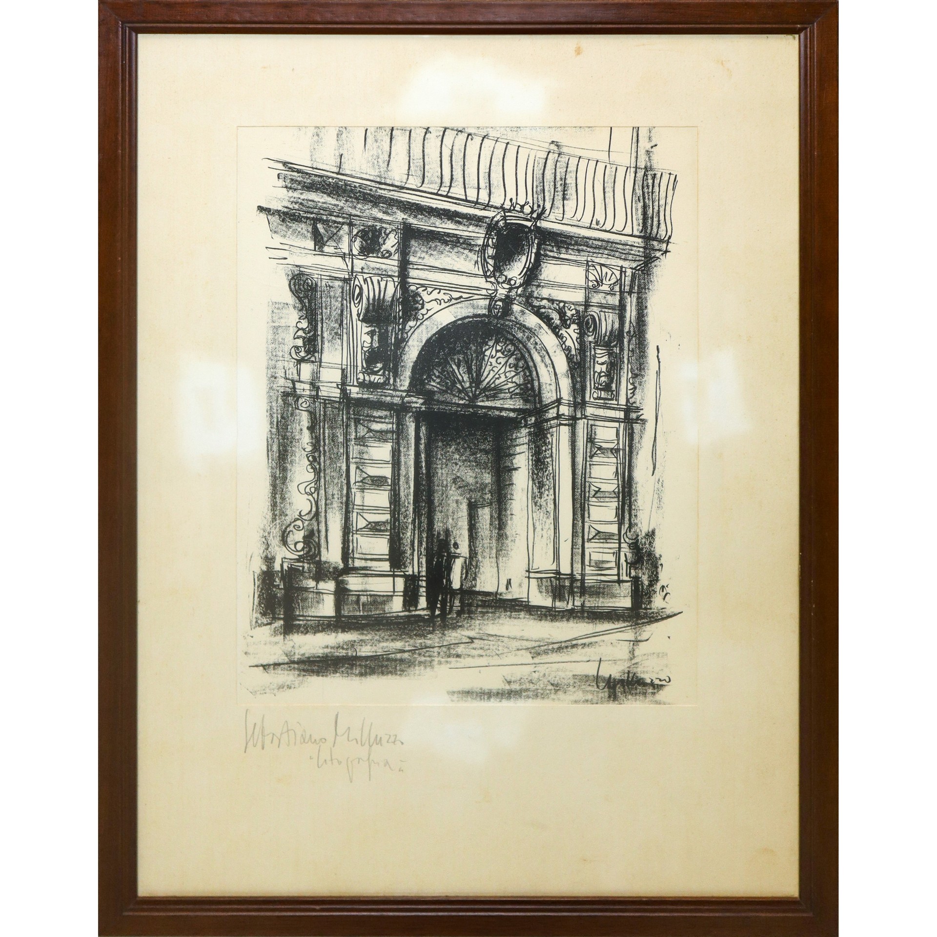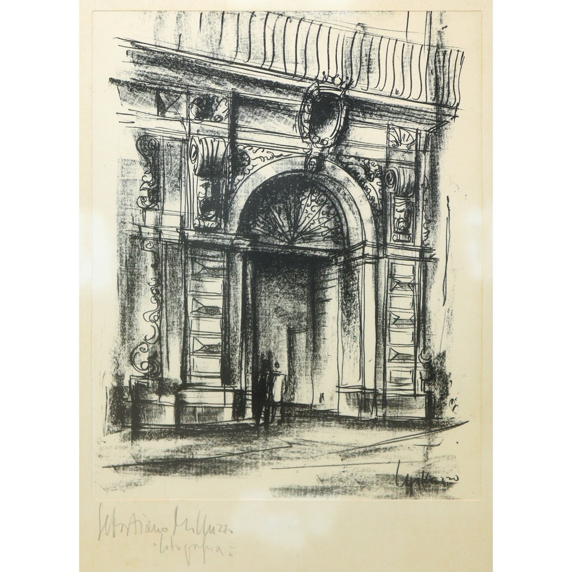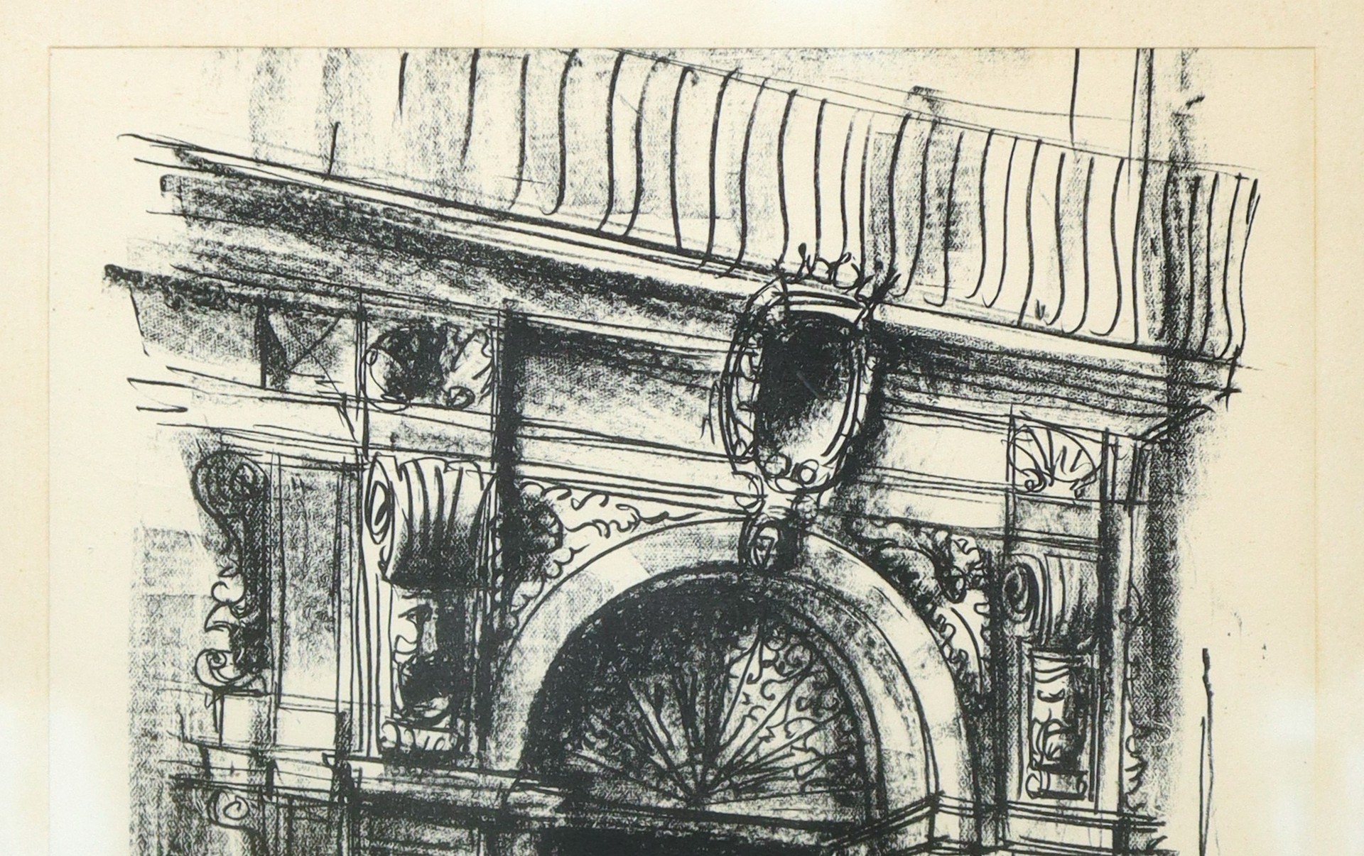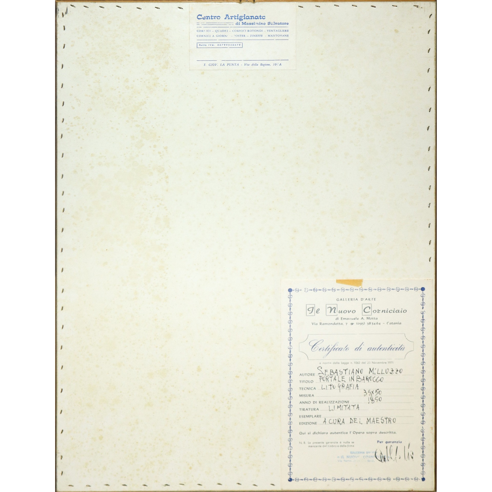 Sebastiano Milluzzo (Catania 1915 - Catania 2011) - Portale barocco, 1950 h cm 50X35 in cornice h cm 52X38 litografia Certificazione sul retro