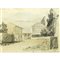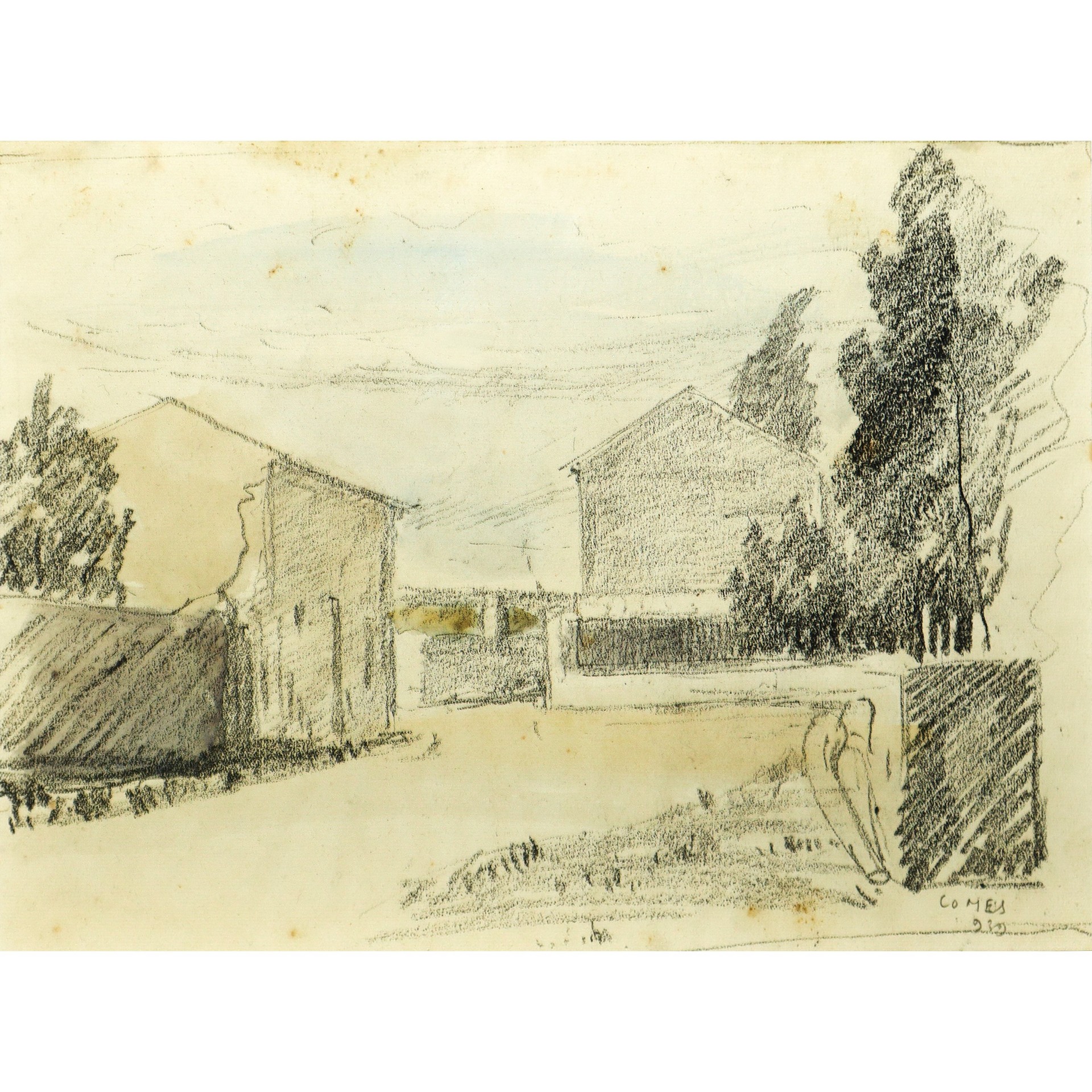 Carmelo Comes (Catania 1905 - Catania 1988) - Paesaggio con case H cm 20x28 - in cornice H cm 38x46 Disegno acquarellato Firmato in basso a destra Comes, datato 1939