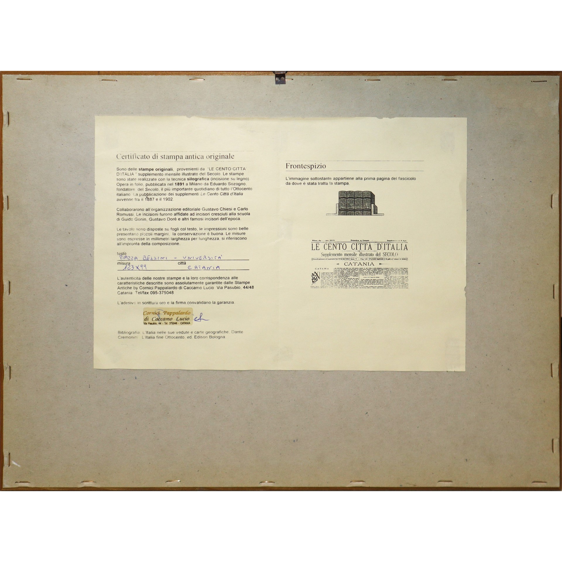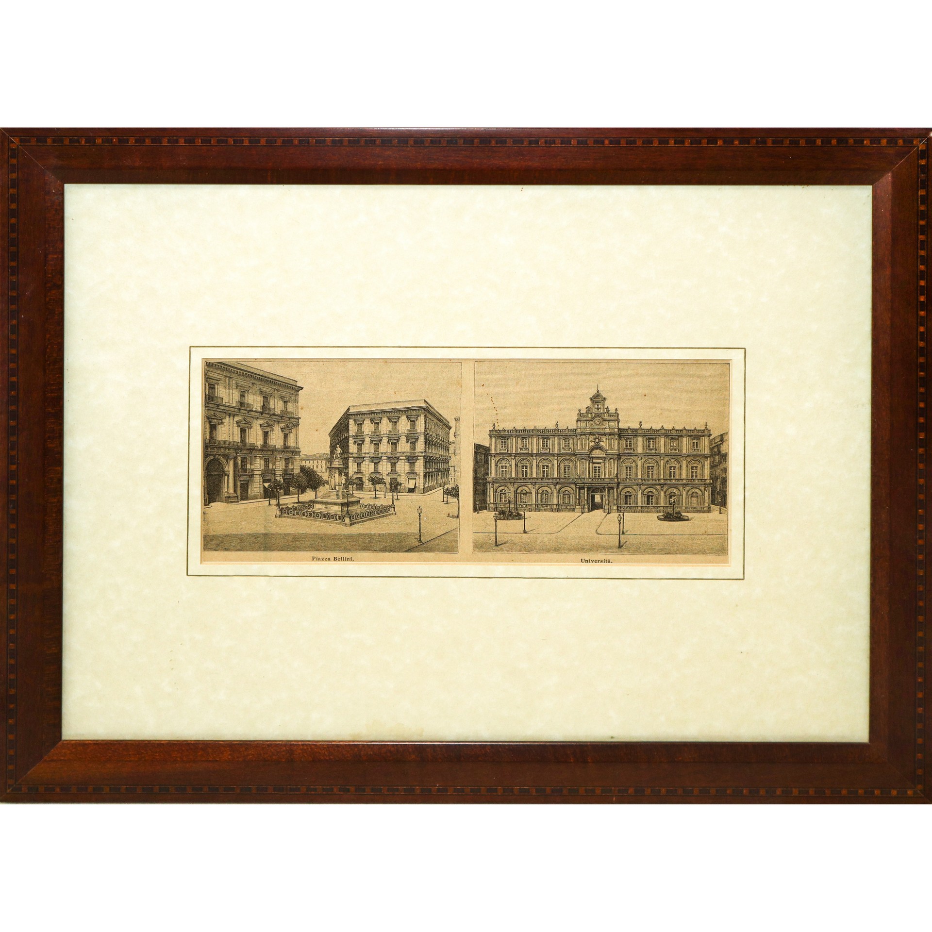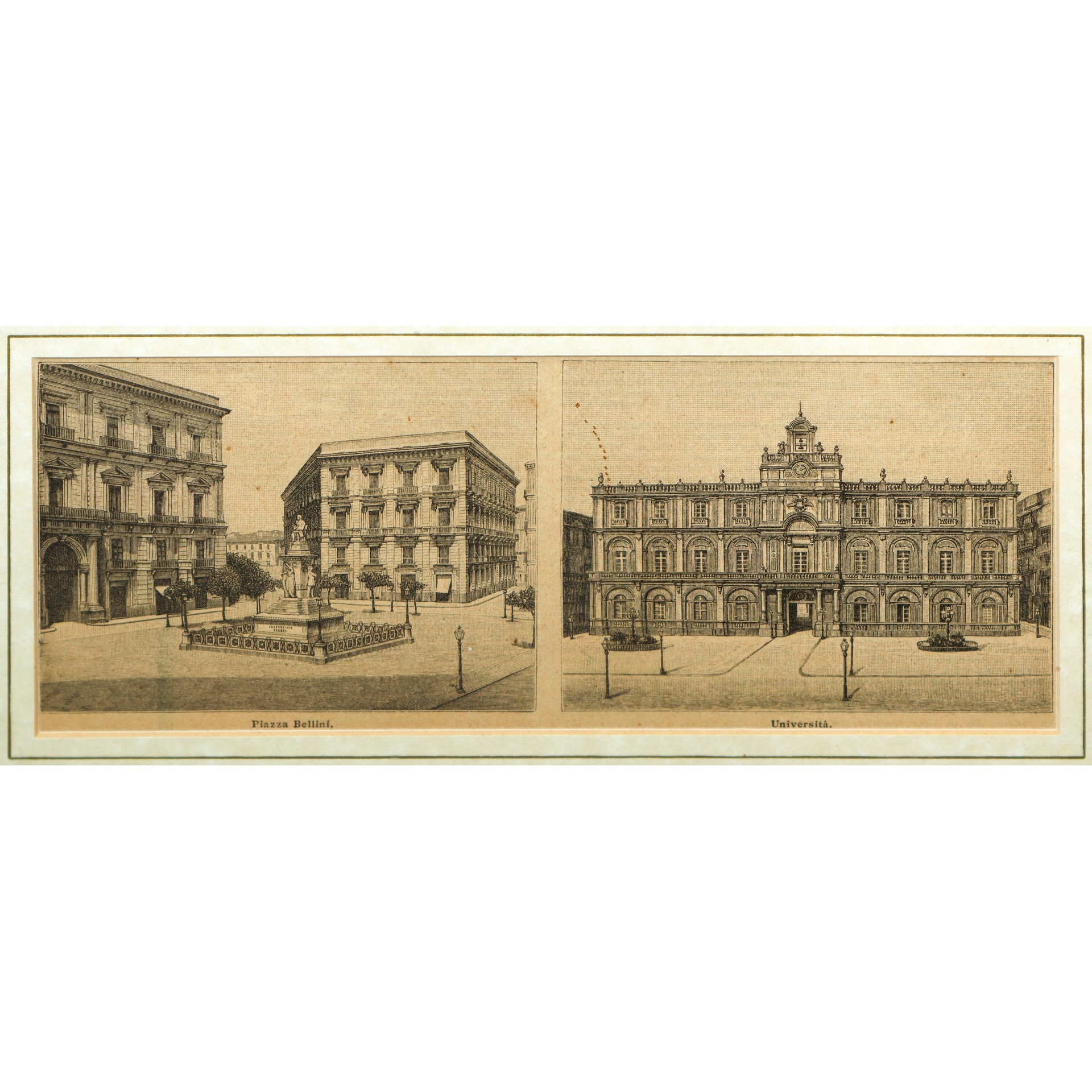 Piazza Bellini e Piazza Università di Catania, Milan 1891 mm 99X123 in cornice h cm 35X45 Stampa Editore Eduardo Sonzogno