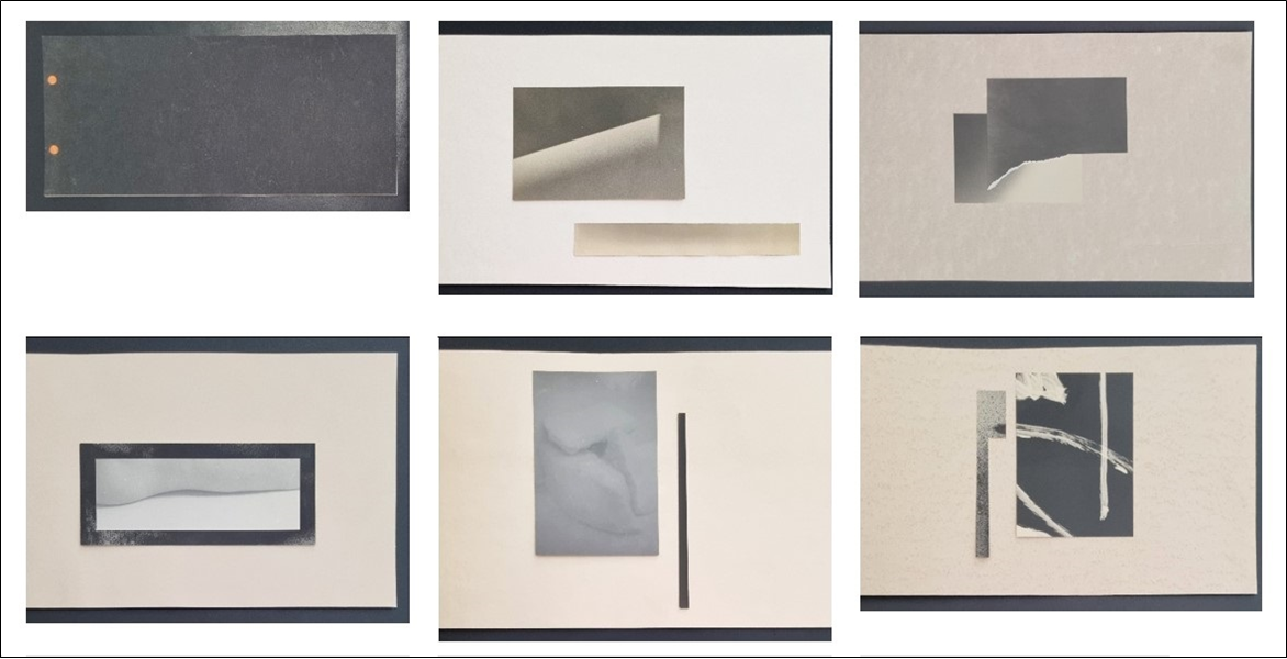 KHAVRO ROSTYSLAV 1988 "Abstract work" Libro d'arte contenente n. 5 foto di varie dimensioni, applicate su cartoncino cm 18x40, del 2024. Edizione 1/1. Sull'ultima pagina firma, titolo e data.