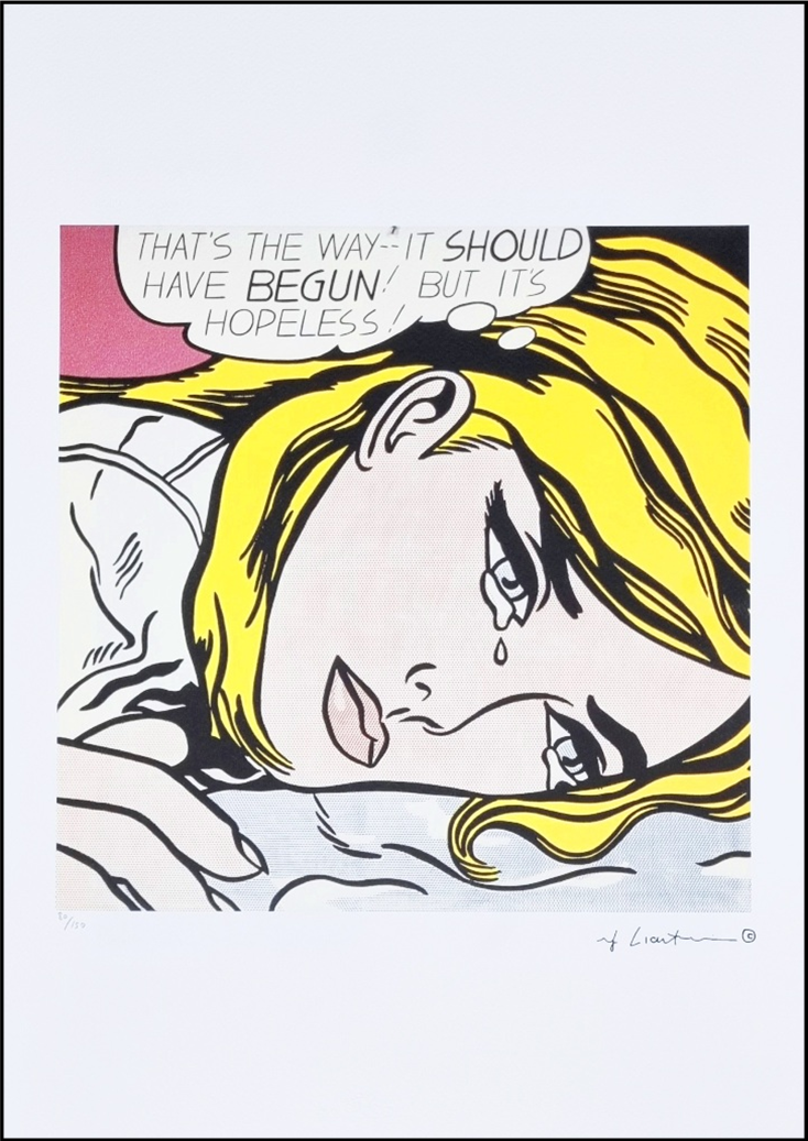 LICHTENSTEIN ROY New York 1923 - 1997 "Senza titolo" Litografia offset cm 35x50. Firma in stampa sul fronte in basso a destra, tiratura a sinistra. Sul retro ologramma di autenticità.