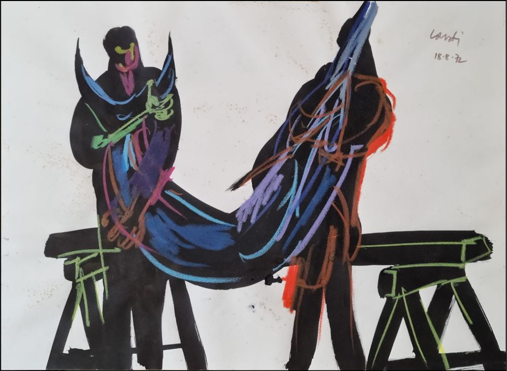 CONSOLI MELO Catania 1935 - Grado 2009 "Senza titolo" Disegno su carta cm 32x24 del 1972. Firmato e datato sul fronte in alto a destra. Al verso firma per autentica del Maestro. (Presenta assottigliamento della carta al centro, con piccola mancanza).