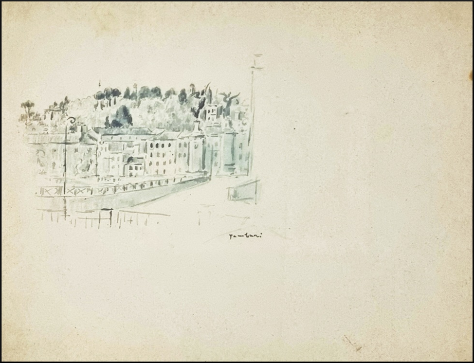 TAMBURI ORFEO Jesi 1910 - Parigi 1994 "Senza titolo" Matita acquerellata su carta beige cm 28x21, corredata di passepartout. Firmata sul fronte in basso a destra. Autentica su foto a cura del Maestro.