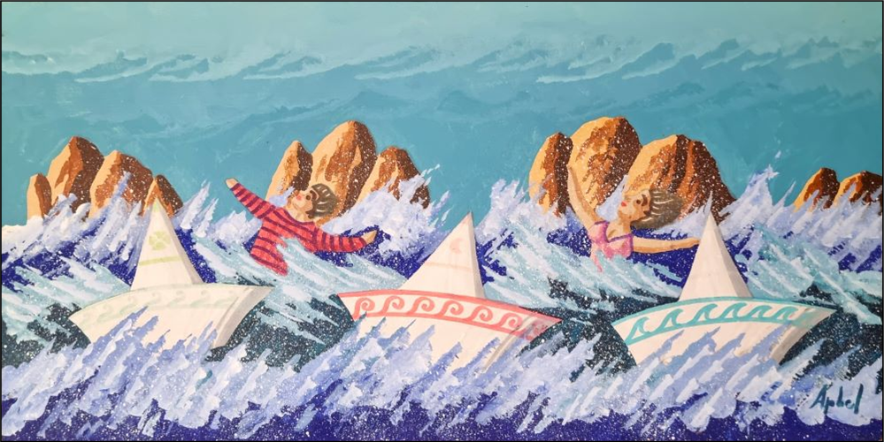 APHEL FABIO Cavalese (TN) 1957 "Marosi confusi" Olio su tavola cm 40x20. Firmato sul fronte in basso a destra. Al verso firma e titolo.