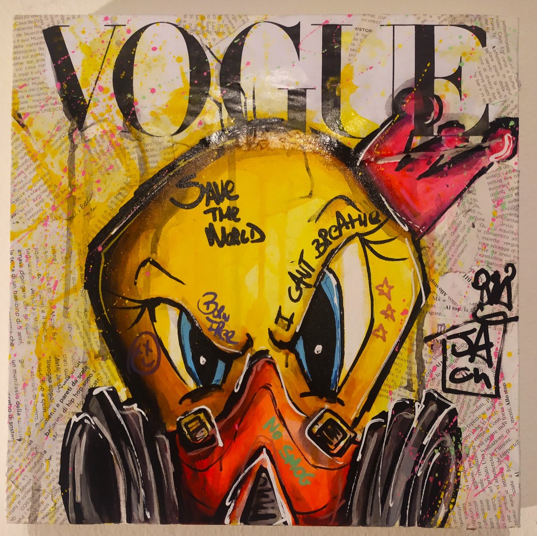 PEREGO JACK Italia 1988 "I can't breathe" Tecnica mista su tela cm 30x30, del 2023. Firmata sul fronte, sul retro intitolata, firmata e datata. Autentica su foto.