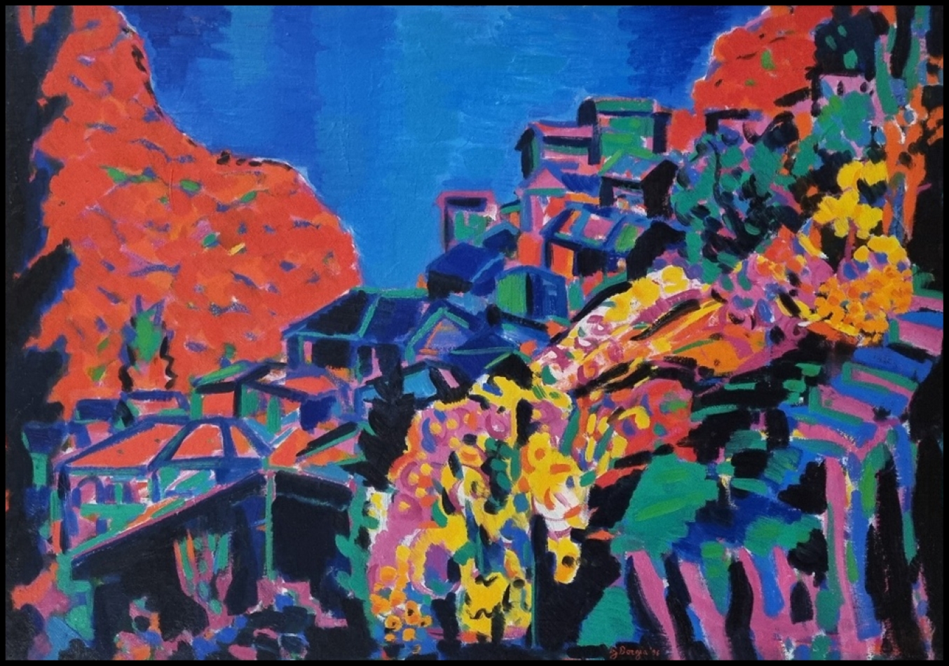 BORGIA GIANCARLO Milano 1958 - Firenze 2002 "Autunno" Olio su tela cm 100x70 del 1996. Firmato e datato sul fronte in basso al centro. Sul retro titolo, luogo, data, firma, timbro ed etichetta descrittiva della Galleria d'arte Cafiso. Autentica su foto a cura dell'Artista.