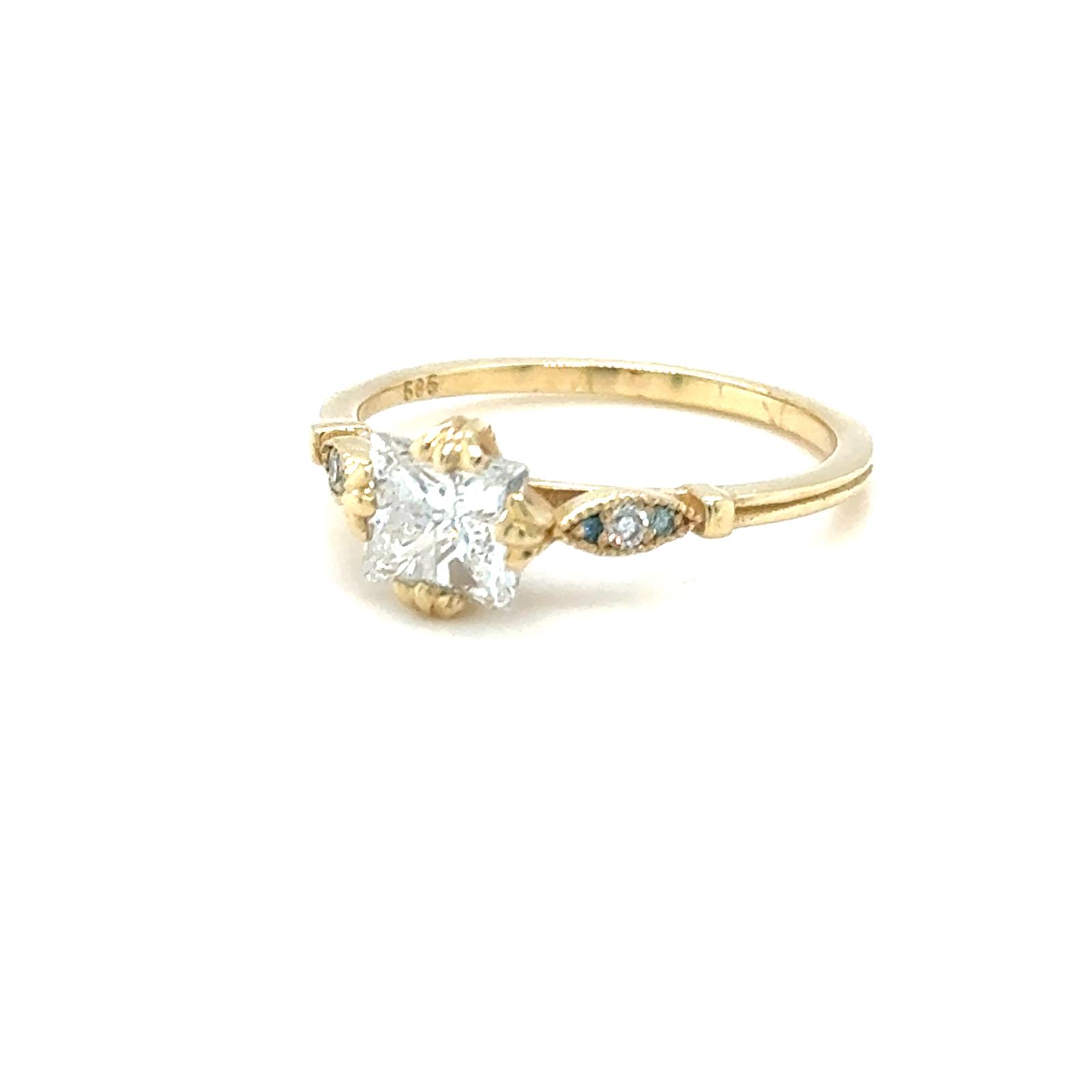 ANELLO IN ORO GIALLO 14K 1,90 GR CON DIAMANTE CENTRALE 1,00 CT COLORE F PUREZZA I1 BRILLANTI E BRILLANTI PER 0,11 CT COLORE D-F PUREZZA VS-S I- TAGLIA 6,5 – DH-R766