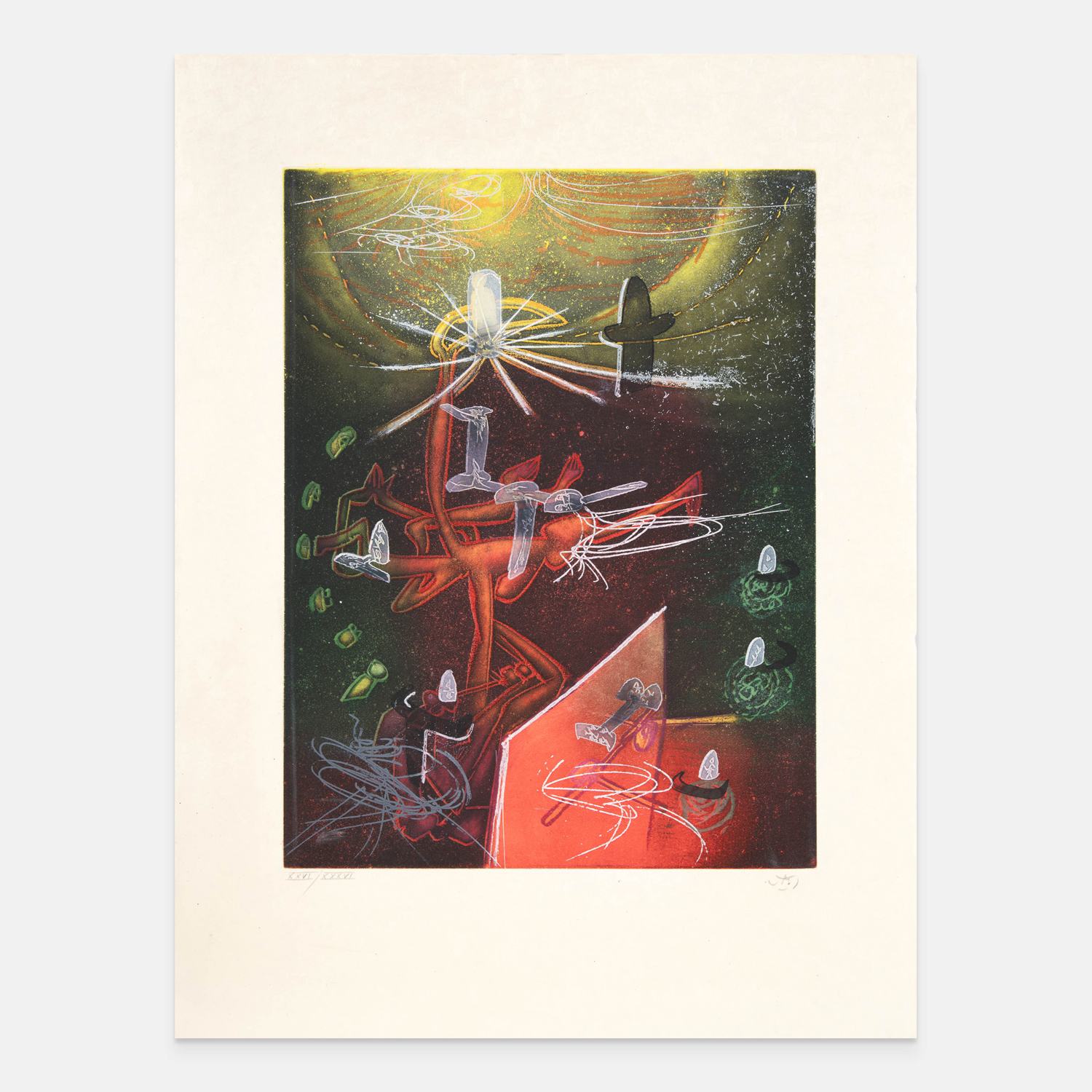 L'opera fa parte della serie "Une Saison en Enfer" di Rimbaud Arthur comprendente 10 incisioni originali di Sebastian Matta. L'opera in oggetto è l'acquaforte n. X della cartella XXVI/XXXVI.