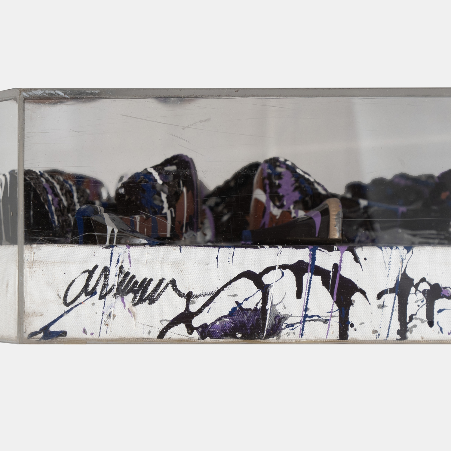 L’opera è accompagnata da certificato di autenticità dell’artista su fotografia rilasciato in data 14 novembre 2002 ed è archiviata presso l’Archivio delle opere di Arman, Galleria Dante Vecchiato, Padova.