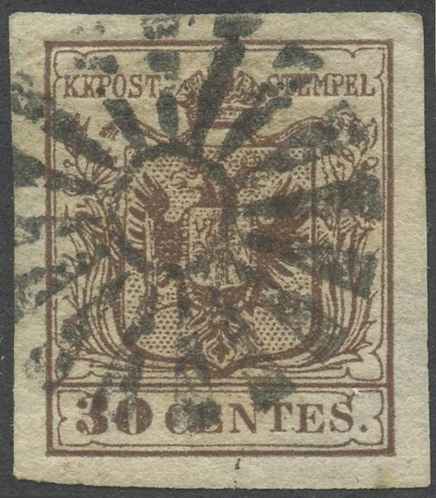 Lombardo Veneto, annullo Muto di Milano su 30 cent. I tipo.