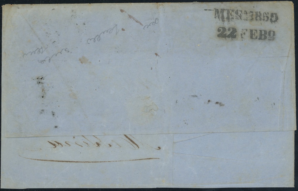 Sardegna - IV emissione, Busta triplo porto da Genova per Messina viaggiata con i piroscafi.