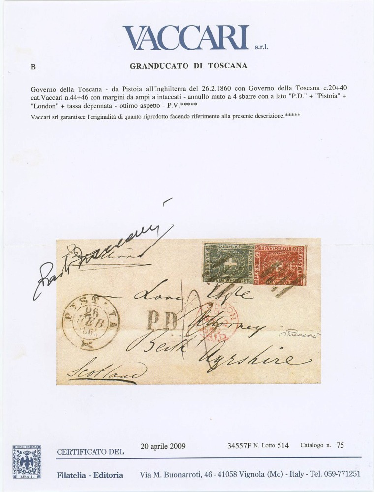 Lotto 197 | Toscana - Gov. Provvisorio, storia Postale