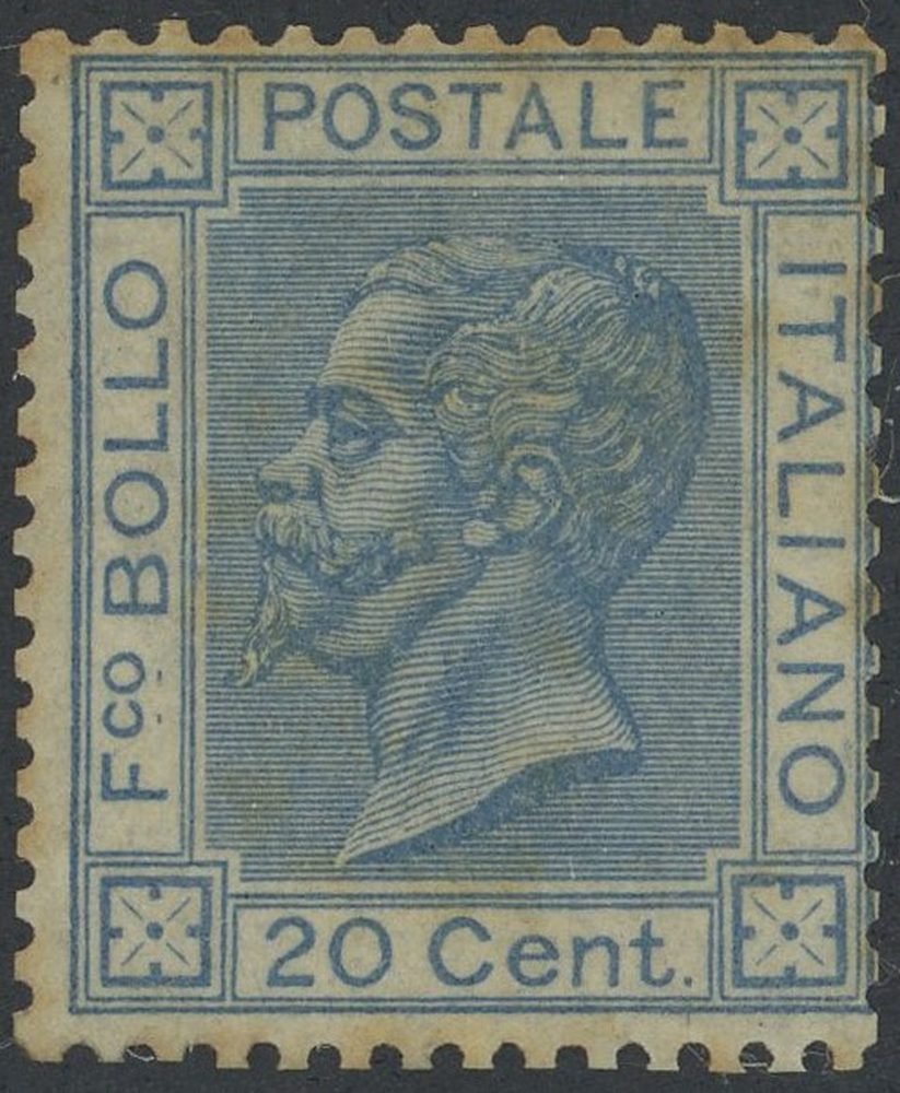 1867 - 20 cent. azzurro chiaro n.T26b, nuovo con linguella MH. Alcuni punti di ingiallimento. Certificato Sollami.
