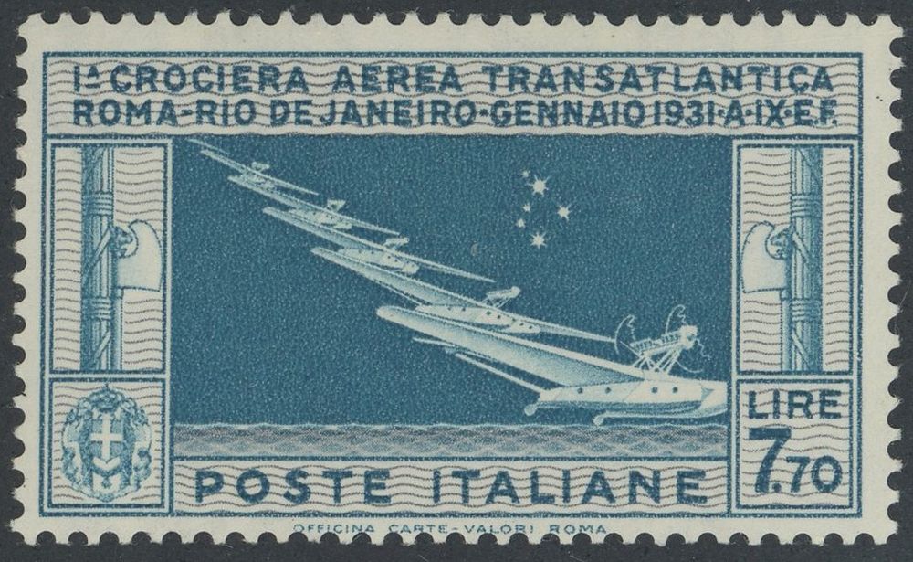 1930 - Crociera Balbo 7,70 Lire n. 25 nuovo con gomma integra MNH. Molto ben conservato.