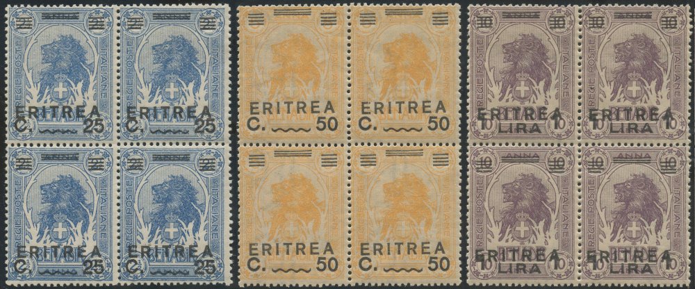 1922 - serie ''Leone o Elefante'' soprastampati n.54/60 in splendide quartine nuove con gomma integra. Splendido insieme.