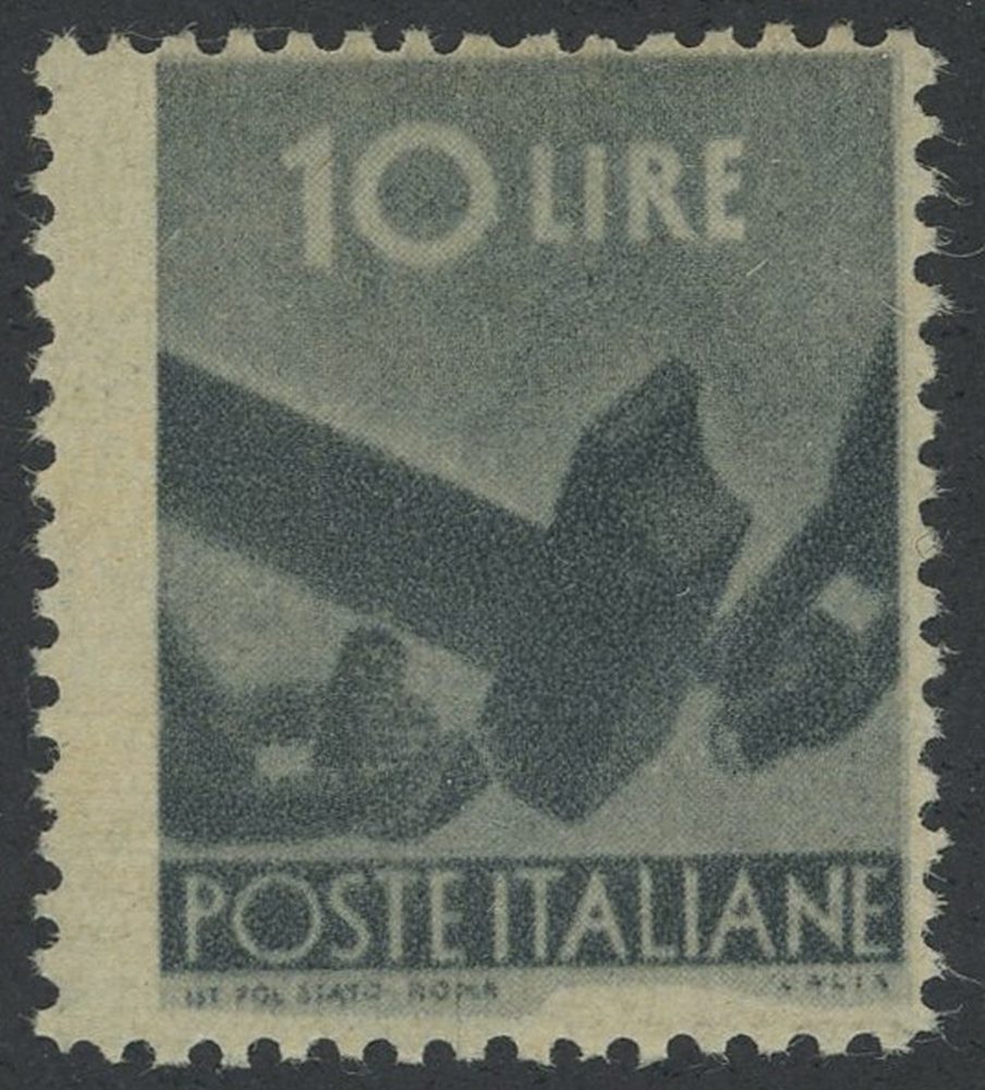 1945 - 10 Lire ardesia falso di Milano senza filigrana n. F558, nuovo con gomma integra. certificato Alberto Diena.