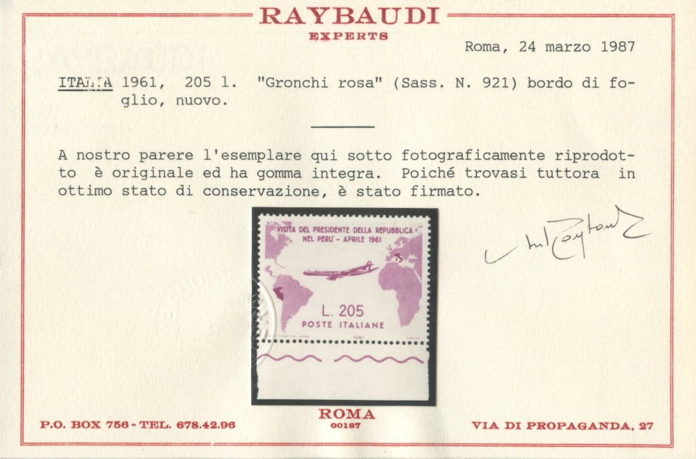 Lotto 279 | 1961, Gronchi Rosa 205L n. 921.