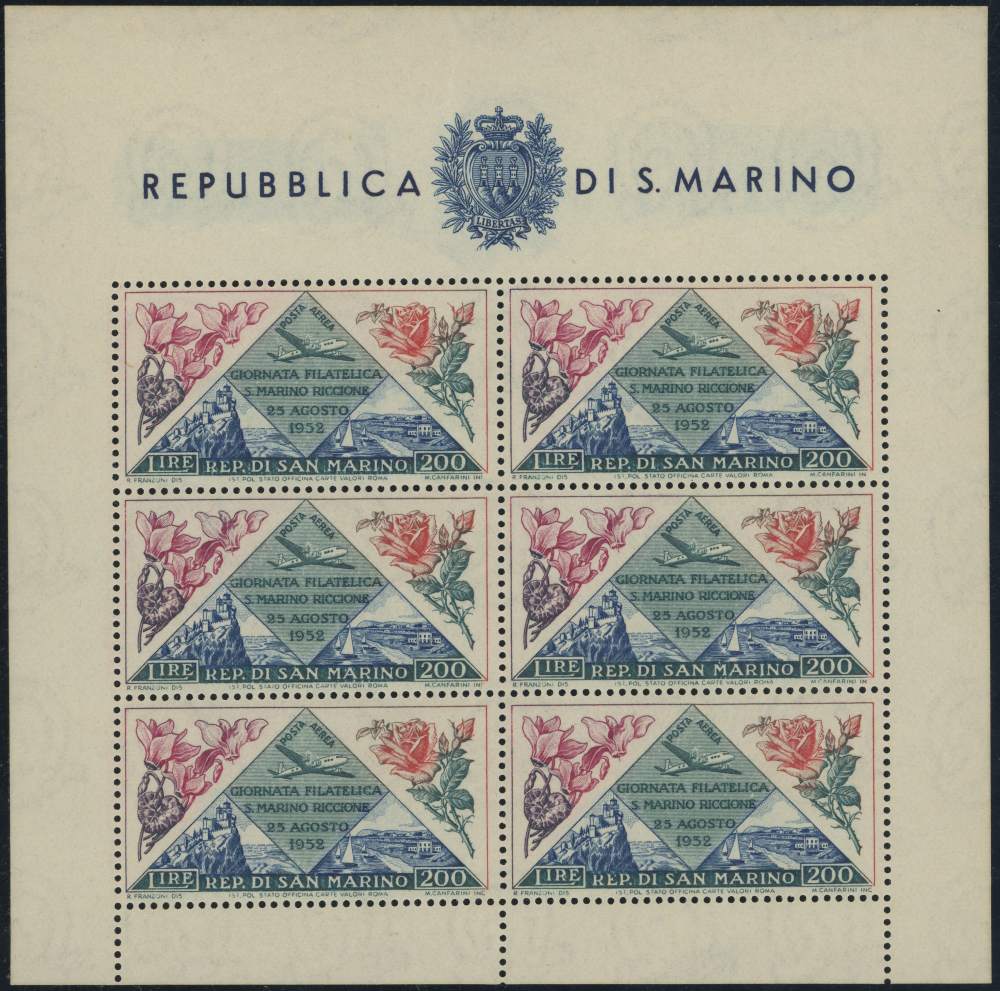 1952 - Foglietto Riccione BF n. 14, nuovo con gomma integra MNH. Certificato Sollami.