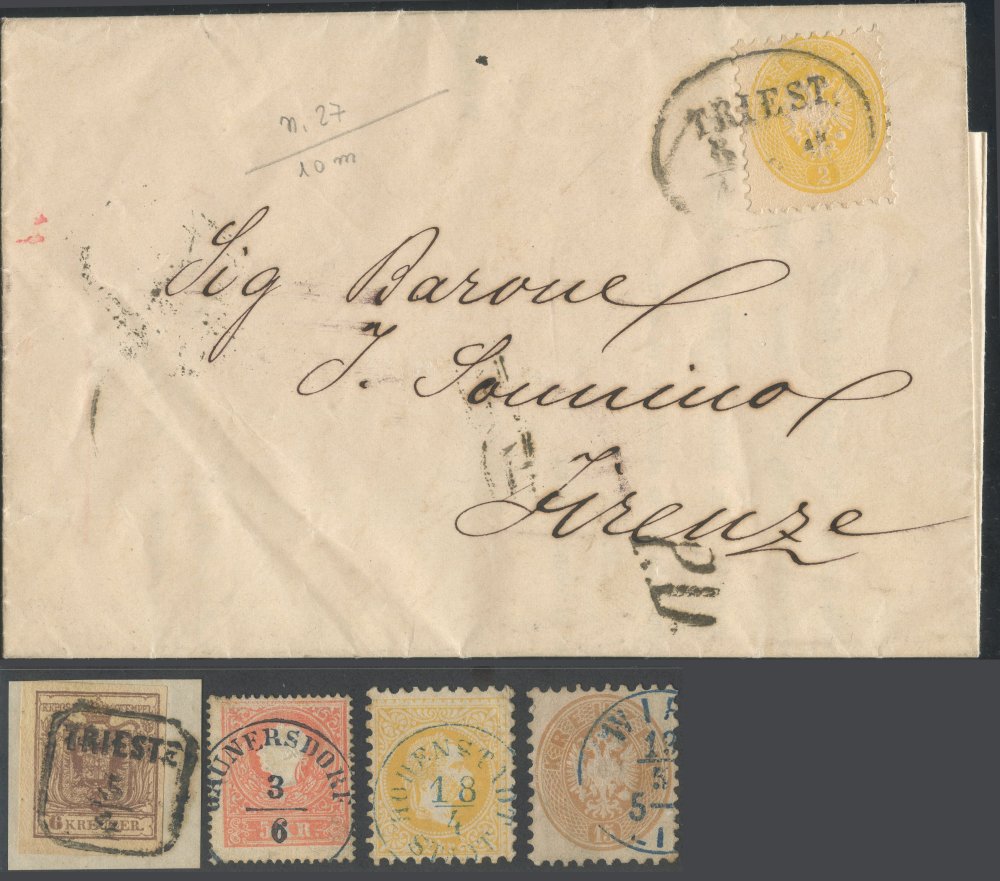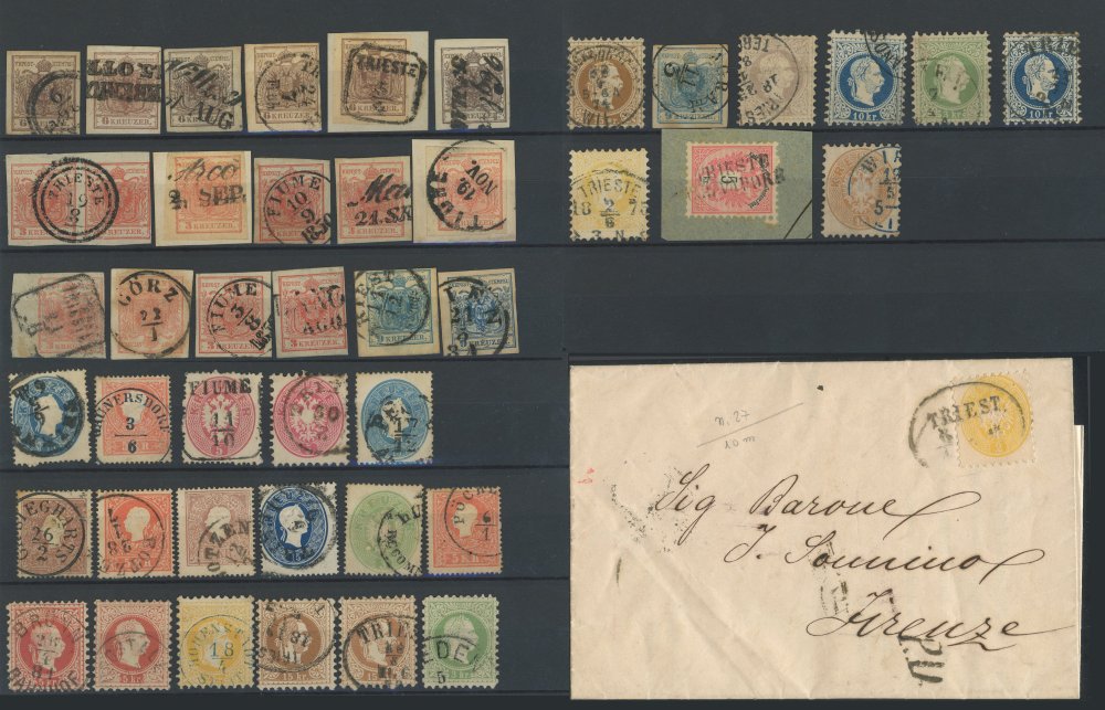 1850 - Interessante insieme composto da 44 francobolli + una lettera del I periodo con diversi interessanti annullamenti.
