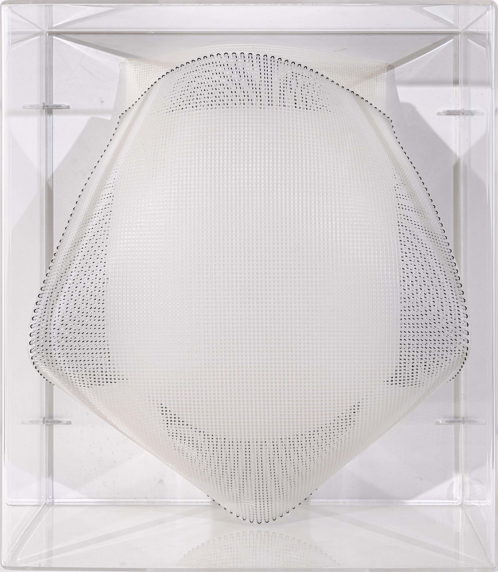 plastica e filo entro teca di plexiglass cm. 34x30x13