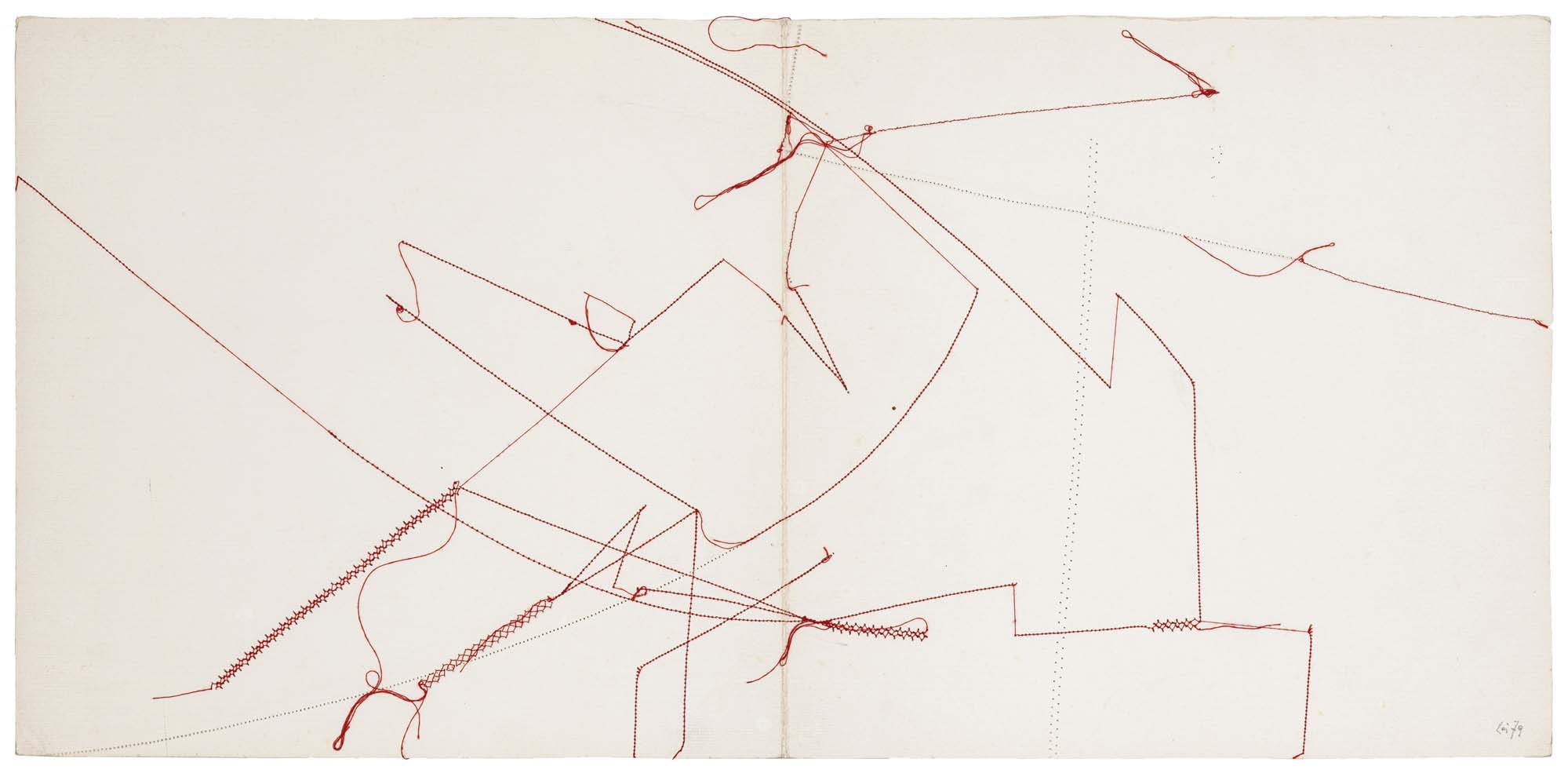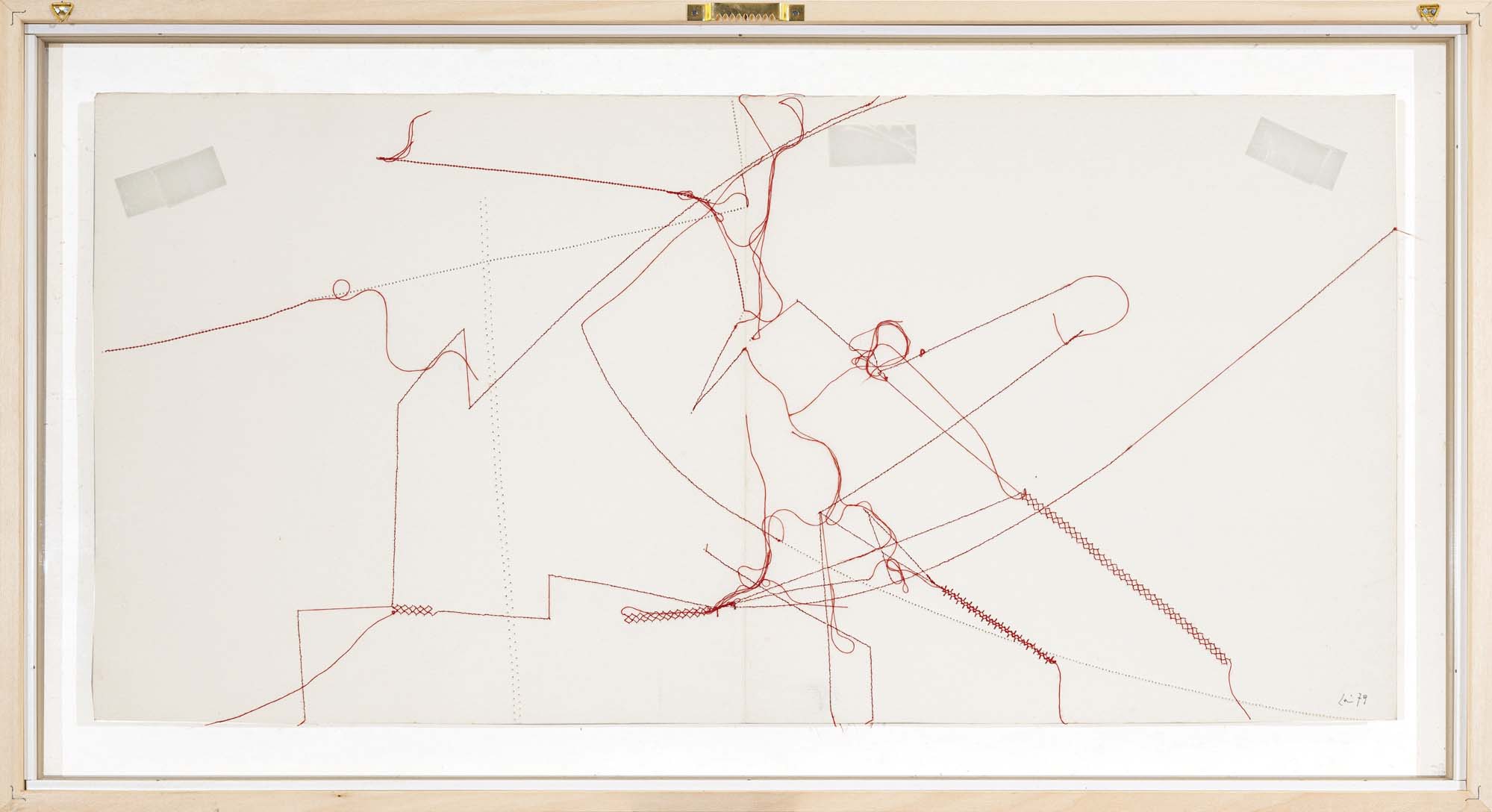 ricamo a filo rosso cucito su cartoncino cm. 30,5x63