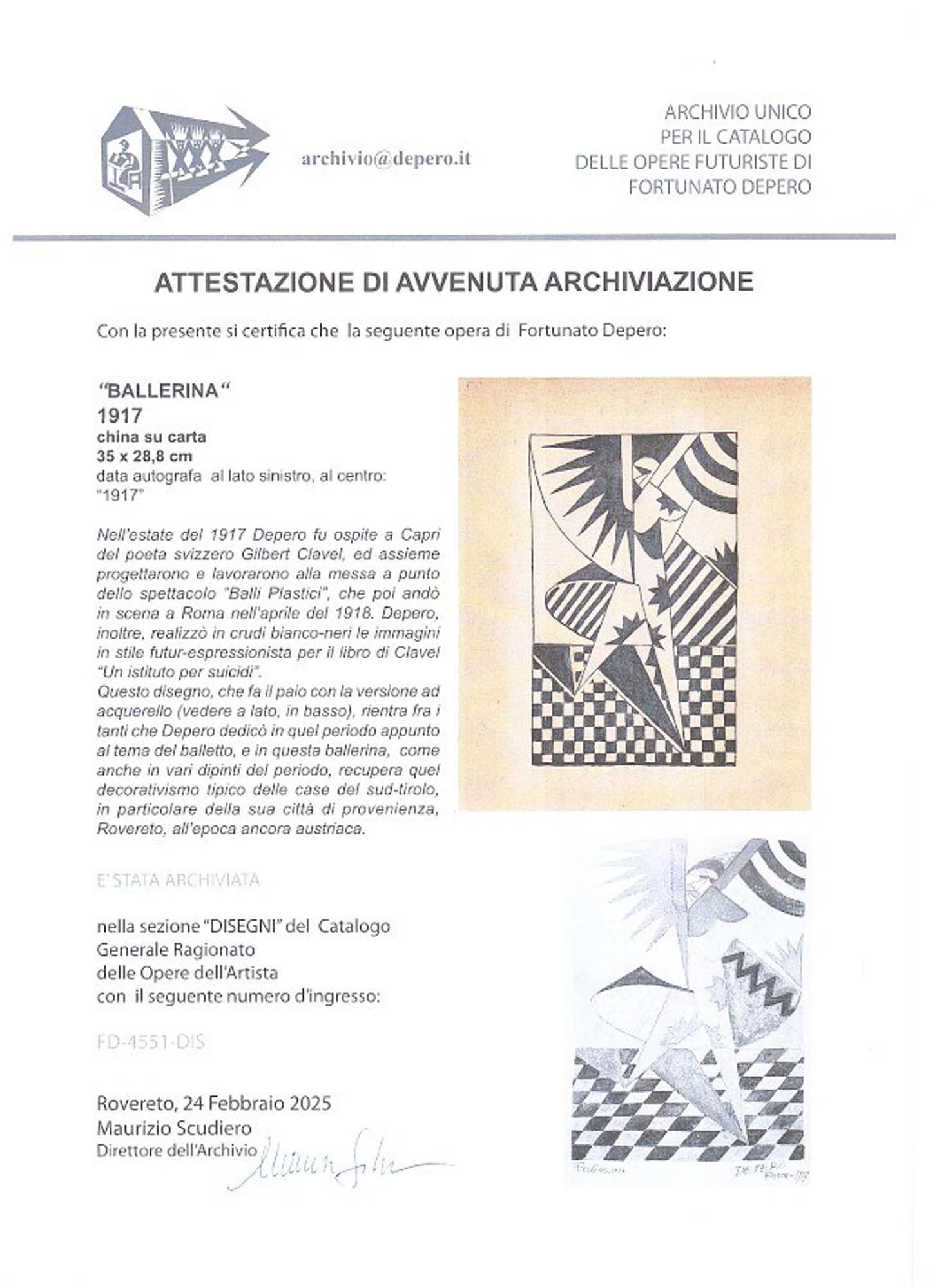 opera archiviata nella sezione disegni del catalogo ragionato dell'Artista a cura di M. Scudiero con relativo nr. di repertorio