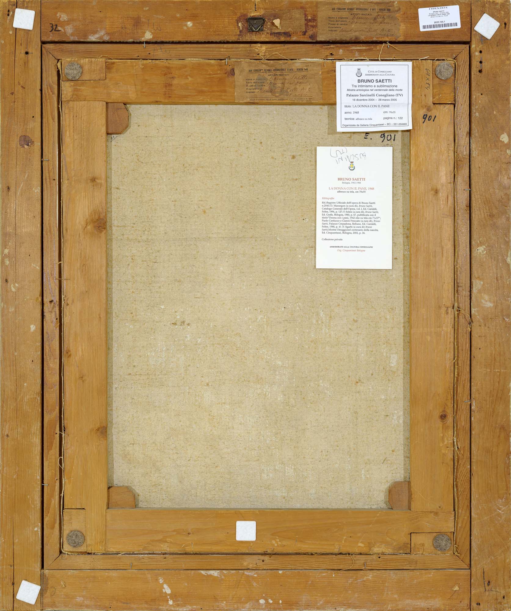 Conegliano Veneto, Palazzo Sarcinelli "Bruno Saetti tra Intimismo e Sublimazione" mostra antologica nel ventennale della morte dic. 2004/marzo 2005 - etichetta al retro