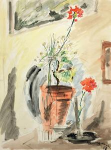 Filippo de Pisis Ferrara 1896 - Milano 1956 Vaso di fiori, 1937 Acquerello su carta, cm. 74,5x54,5 Firma e data in basso a destra: De Pisis / 37. Storia: Eredità Bona Tibertelli de Pisis de Mandriagues, Parigi; Collezione privata