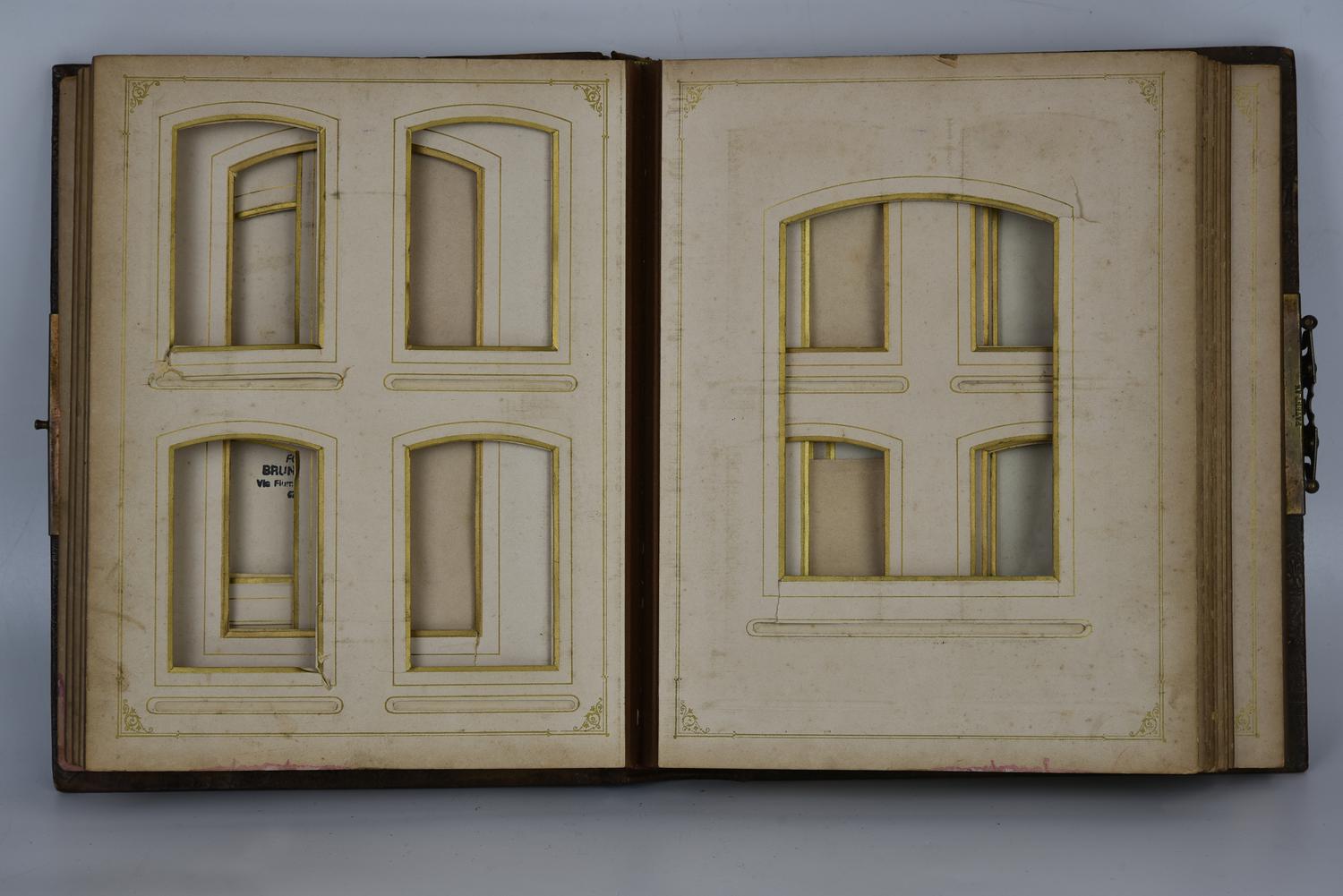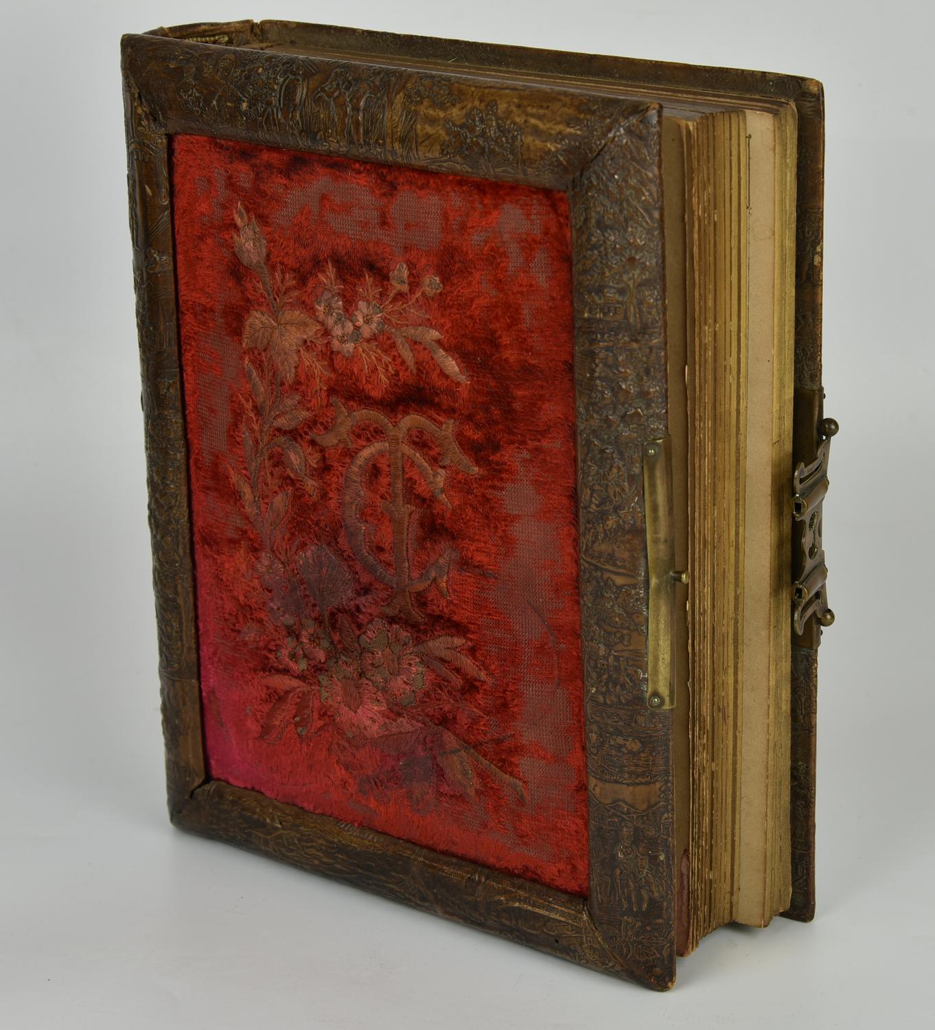 Lotto 75 | ALBUM FOTOGRAFICO rilegatura in pelle con incise scene di genere e velluto...