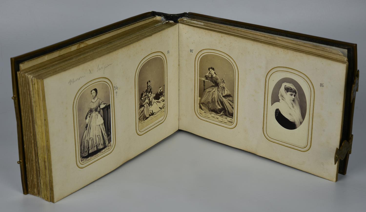 ALBUM FOTOGRAFICO rilegatura in pelle con incisioni decorative e inserti in...